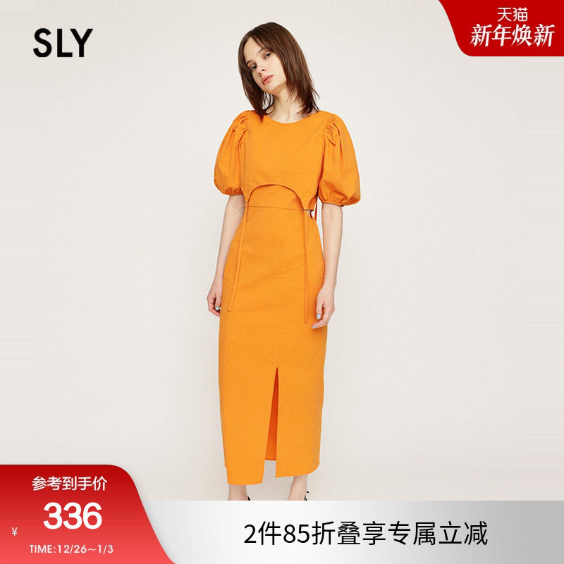 SLY 春季气质优雅泡泡袖两件套开叉连衣裙030HSI33-2041