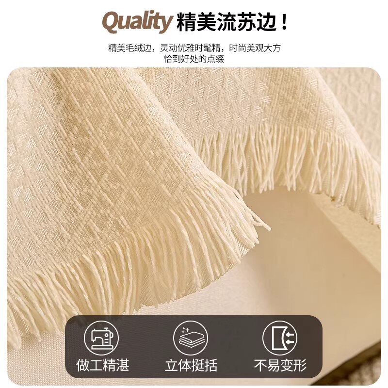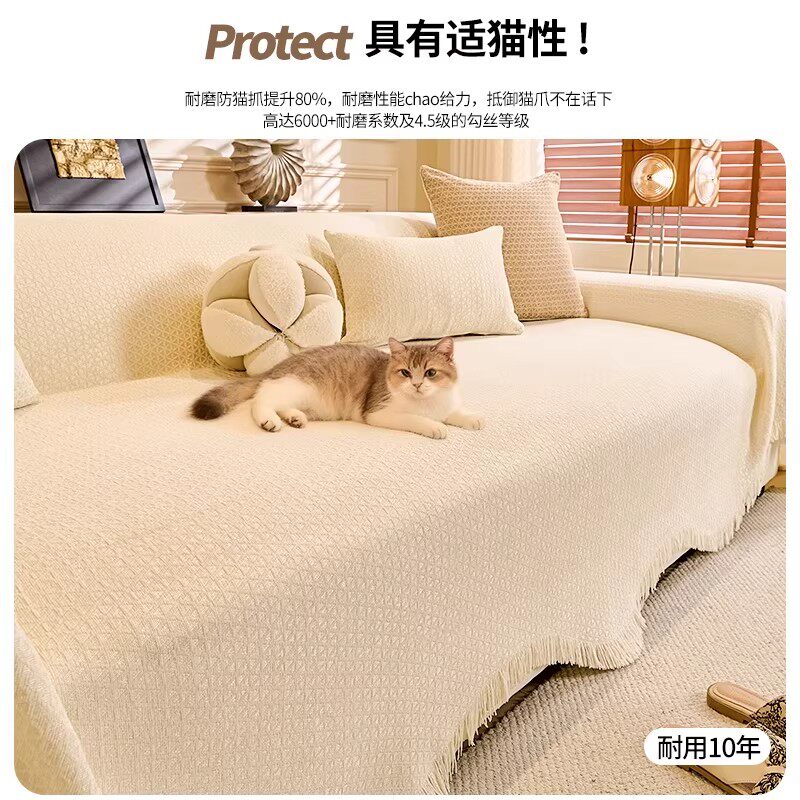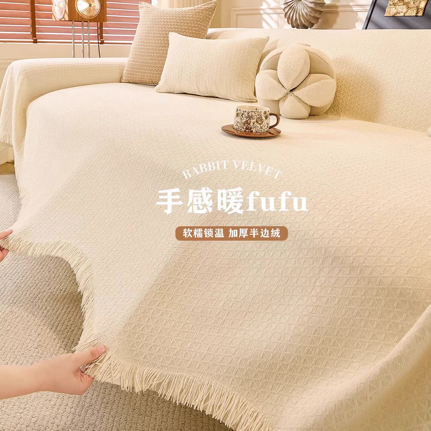 奶油风雪尼尔沙发套防猫抓流苏边沙发巾四季通用2026新款纯色