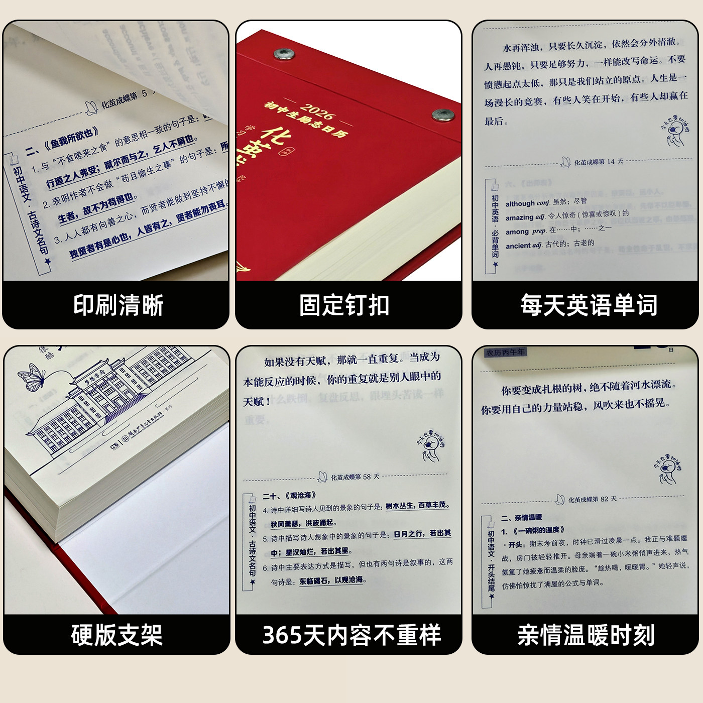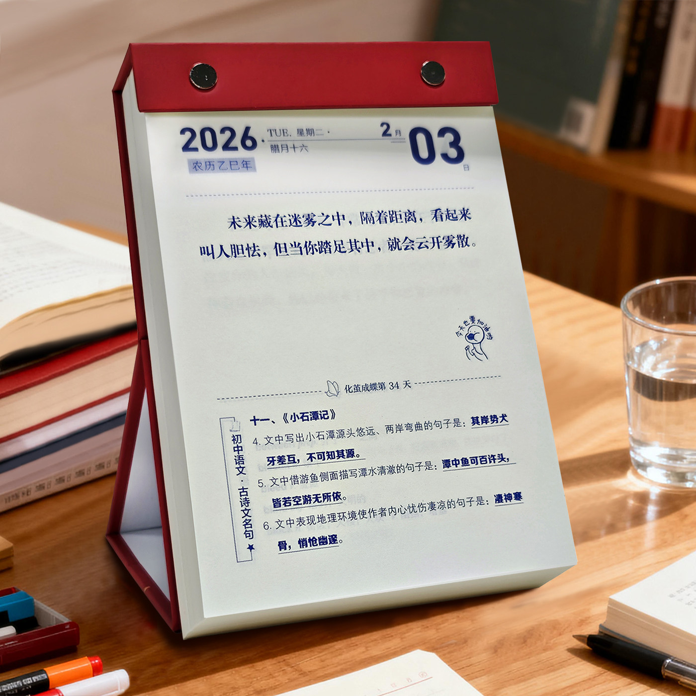 2026年日历新款高颜值初高中生励志化茧成蝶桌面摆件马年创意台历每日一撕鱼跃龙门英语金句语录记事日历
