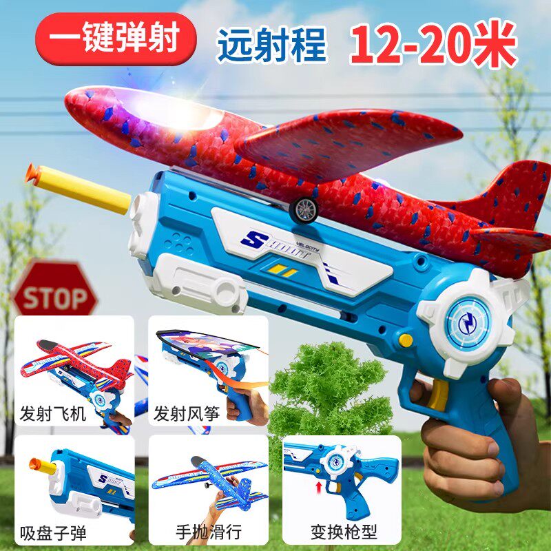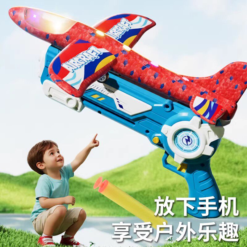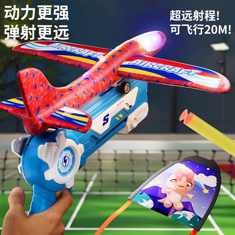 网红弹射泡沫飞机发射枪手抛飞天儿童3-6岁户外运动滑翔风筝玩具