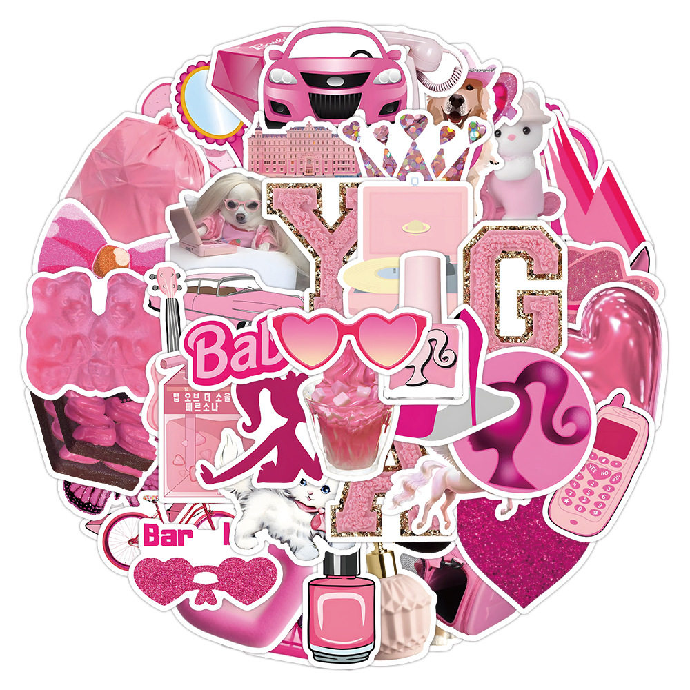 50张ins芭比风卡通涂鸦贴纸小清新装饰汽车水杯吉他贴画