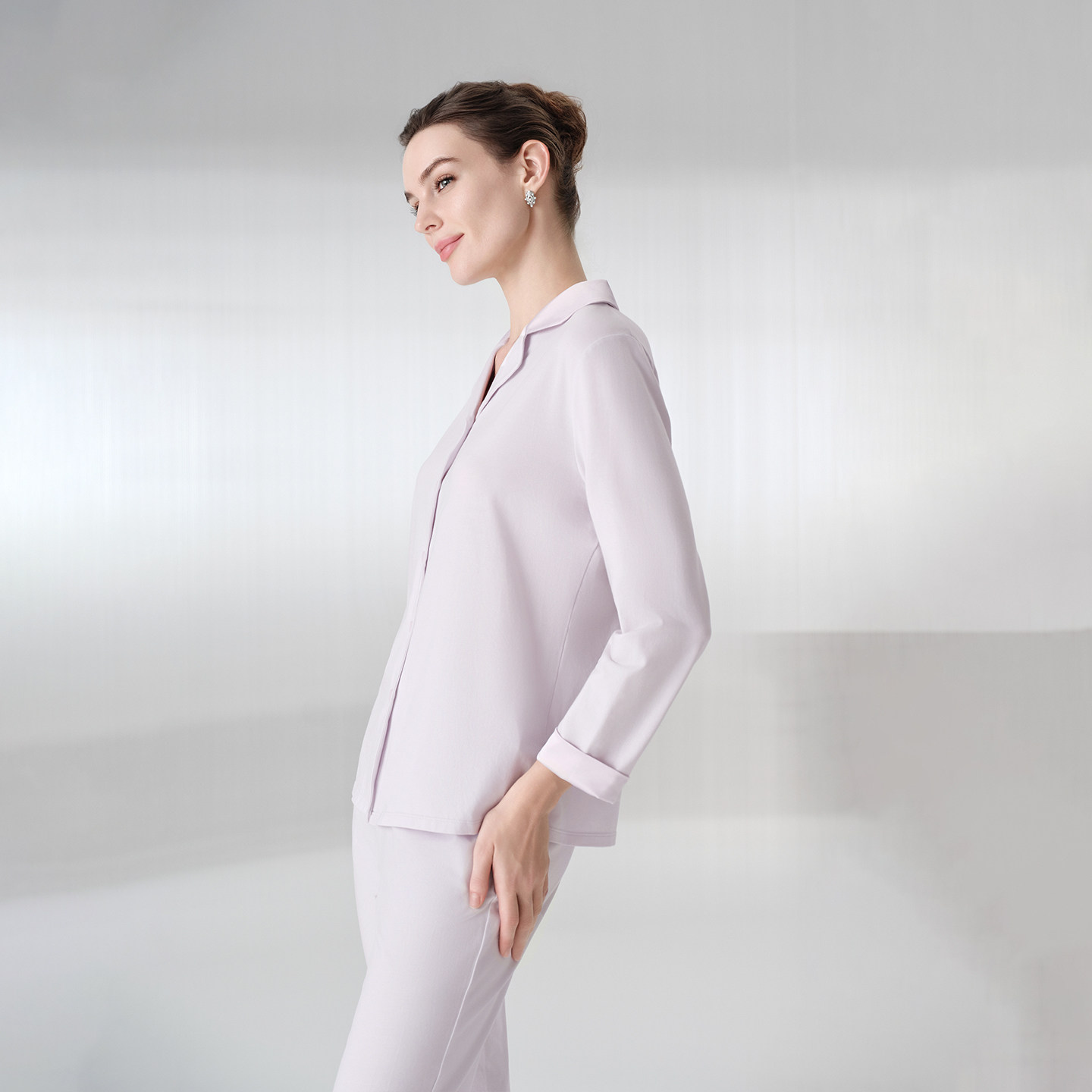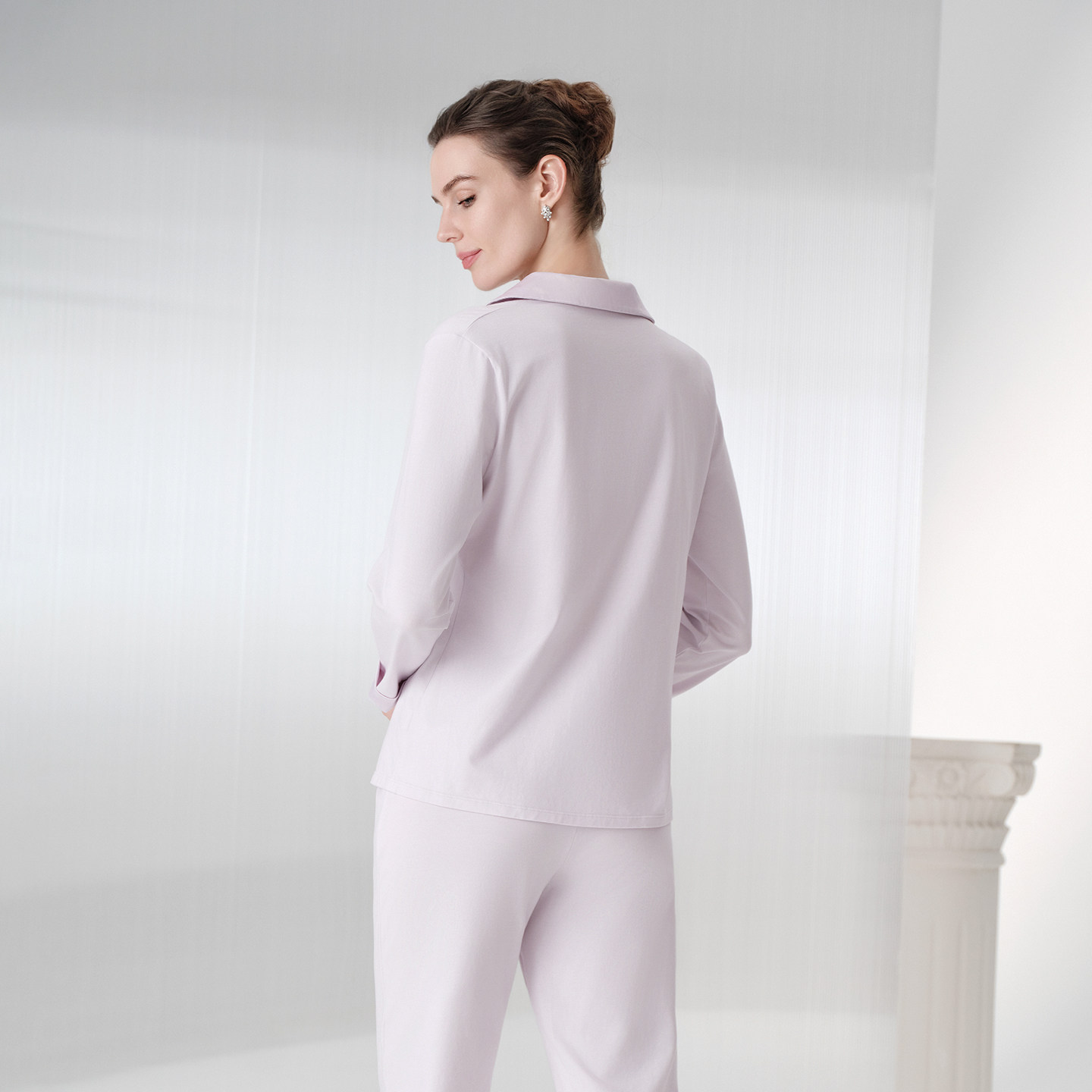 安莉芳旗下E-BRA女士棉简约风长袖长裤开衫睡衣家居服套装KL00213