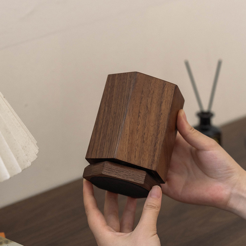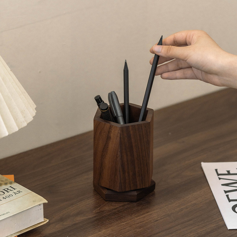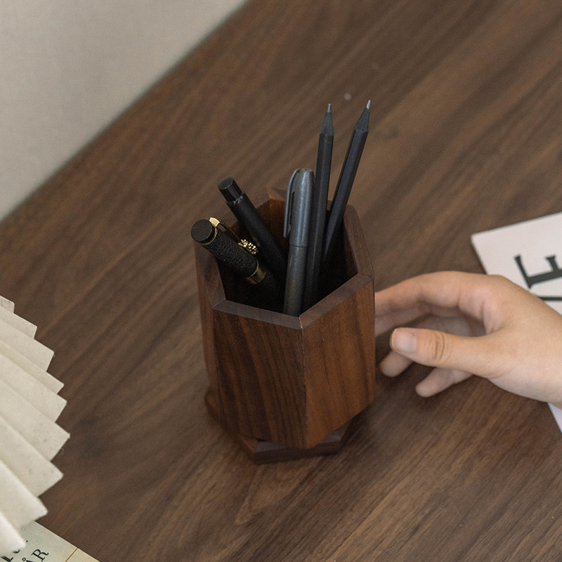 收纳笔筒轻奢高级感旋转办公桌面实木木质家用创意黑胡桃木置物盒