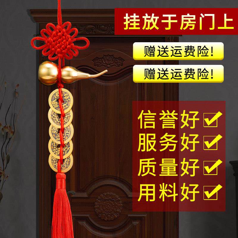 纯铜葫芦五帝钱真品铜钱入户门对门卧室厨房朱砂中国结吉祥结挂件