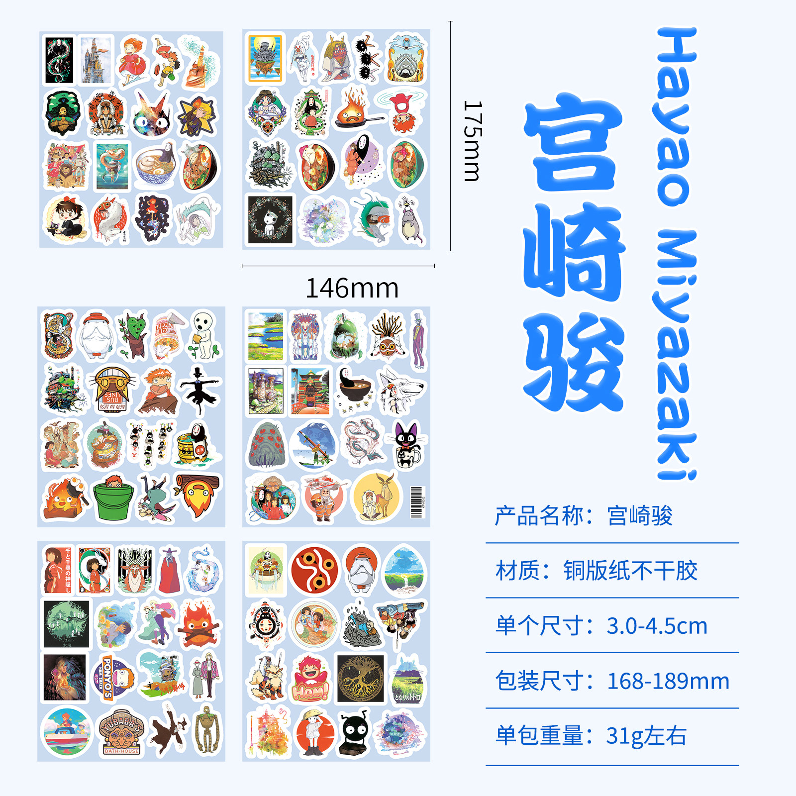 200张宫崎骏贴纸diy自粘儿童素材手机壳行李箱标签立体不干胶贴画