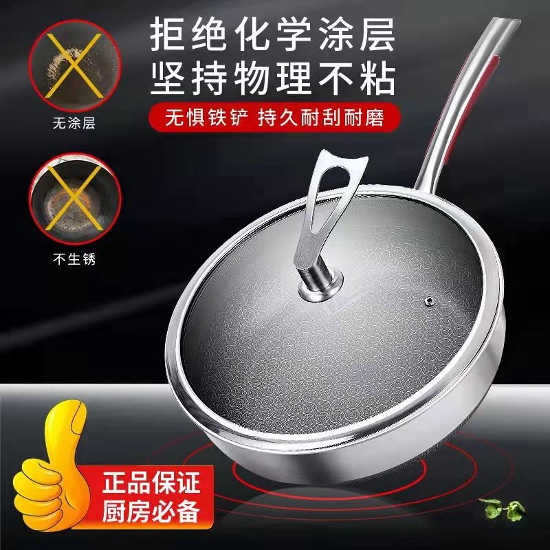 华际达平底锅316不锈钢不粘锅家用牛排煎锅炒菜炒锅无涂层电磁炉