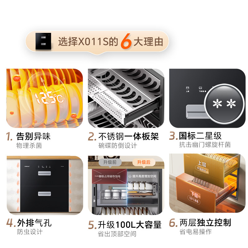 康宝EX011S消毒柜家用嵌入式杯子碗筷厨房内嵌式紫外线碗柜烘干