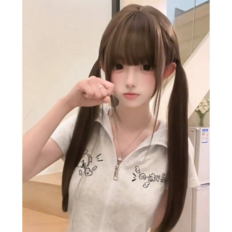假发女长发长直发空气刘海Lolita圆脸甜美自然夏天薄款网红JK全头