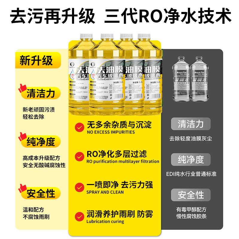 伍尔特汽车乙醇玻璃水强力去污去油膜浓缩雨刮器液特斯拉四季通用