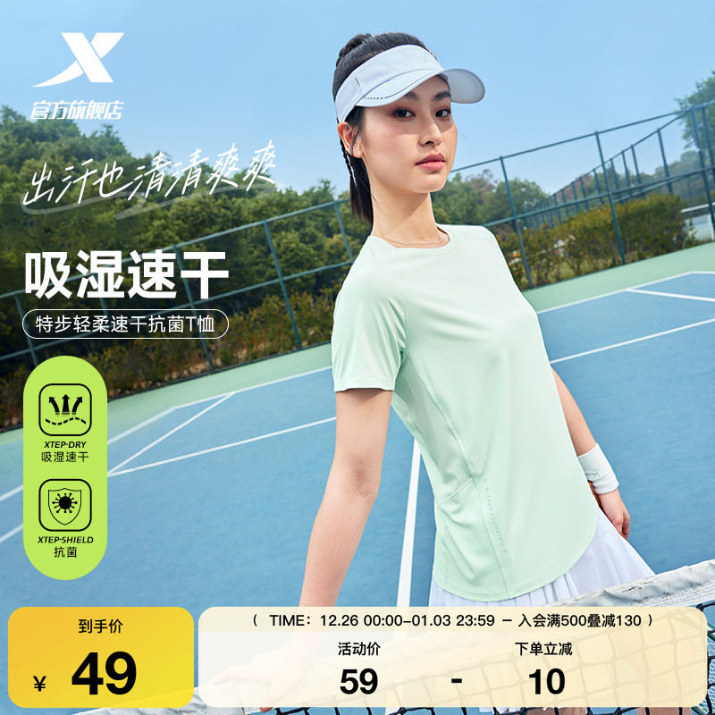特步速干T女2025年新款夏季训练女装健身T恤半袖透气体恤运动短袖