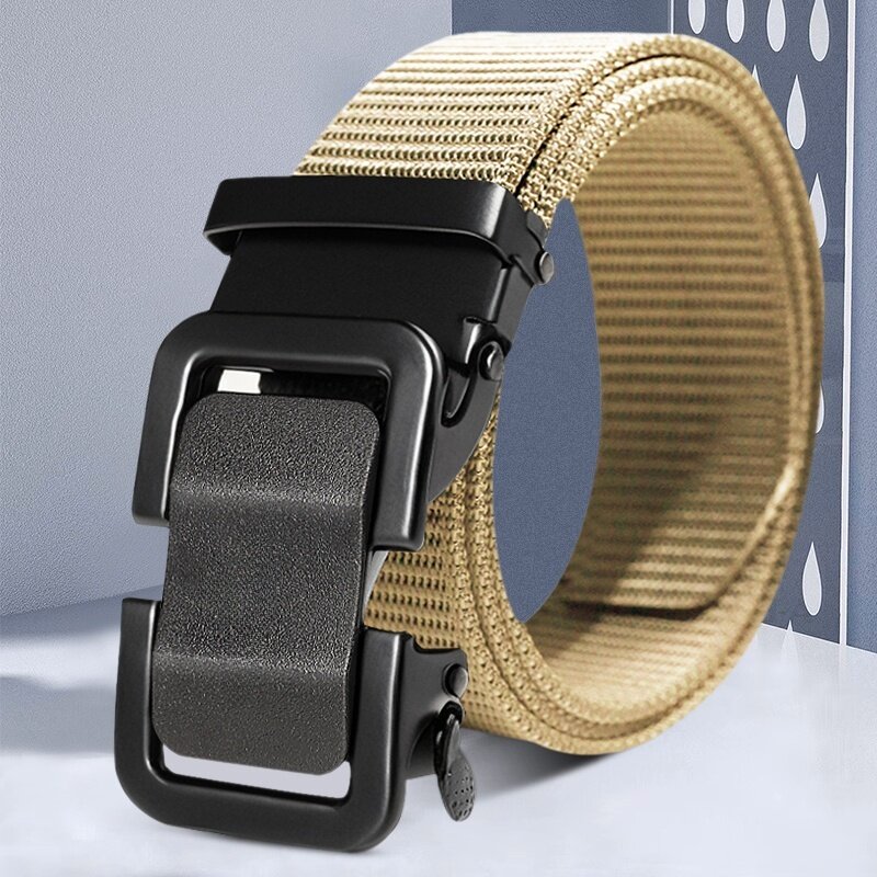腰带男新款自动扣潮流百搭尼龙皮带青少年学生军训透气牛仔裤松紧