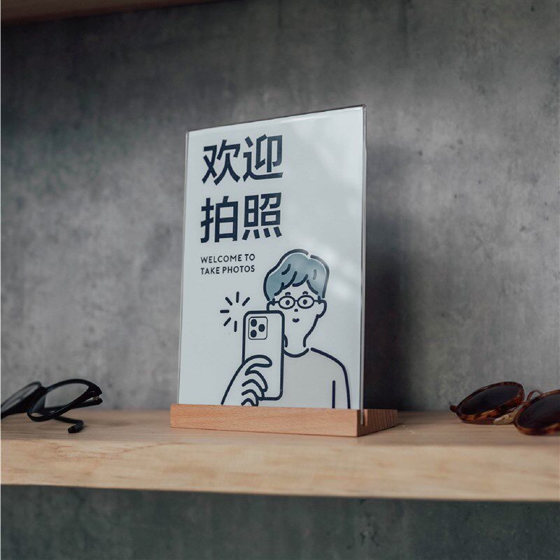 眼镜店柜台亚克力展牌欢迎试戴拍照橱窗展示架装饰陈列牌广告台卡