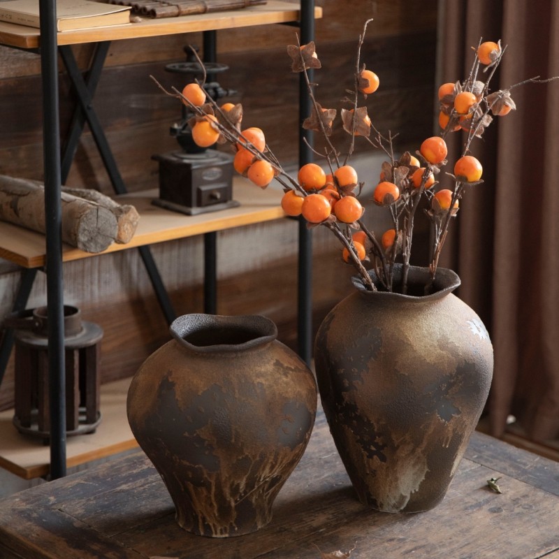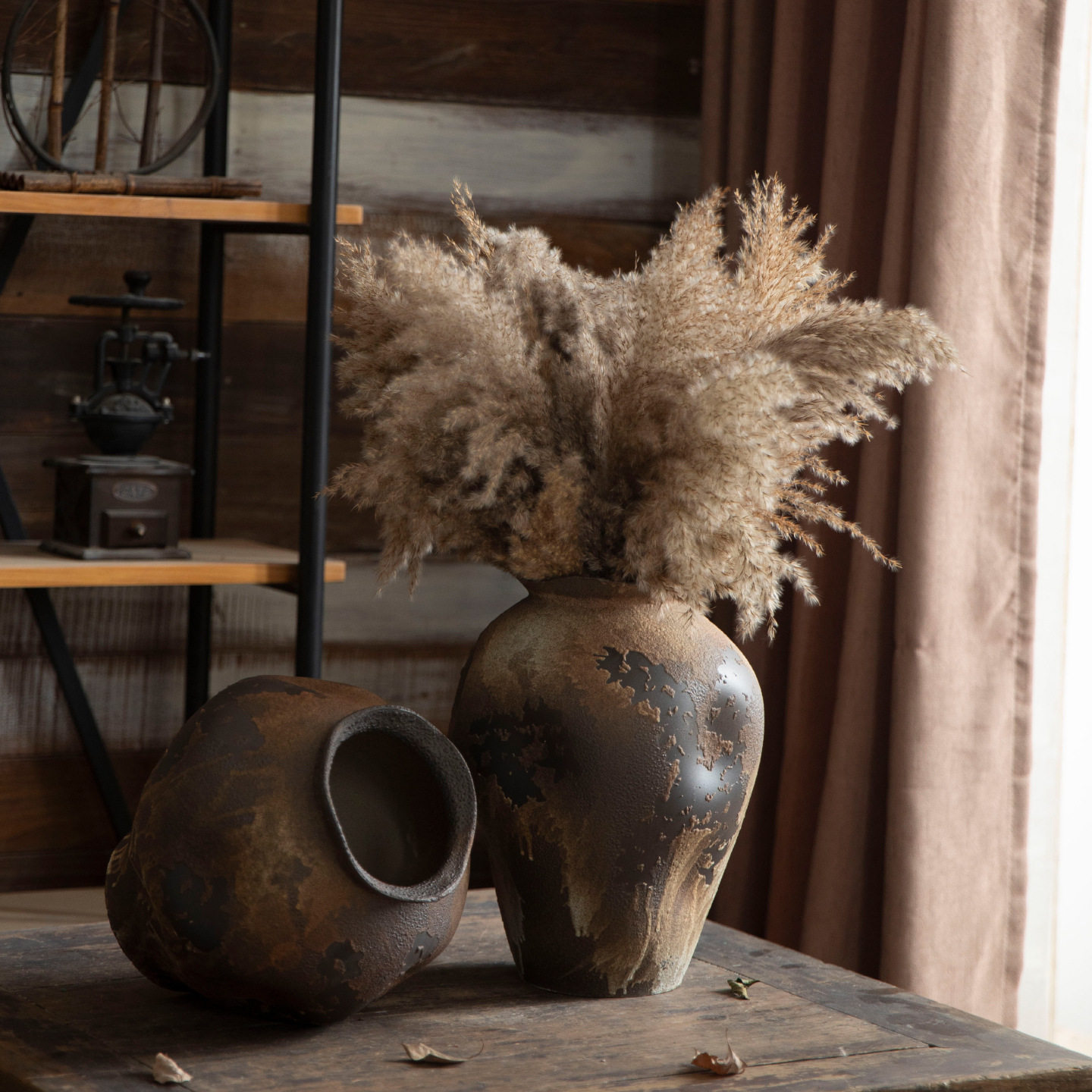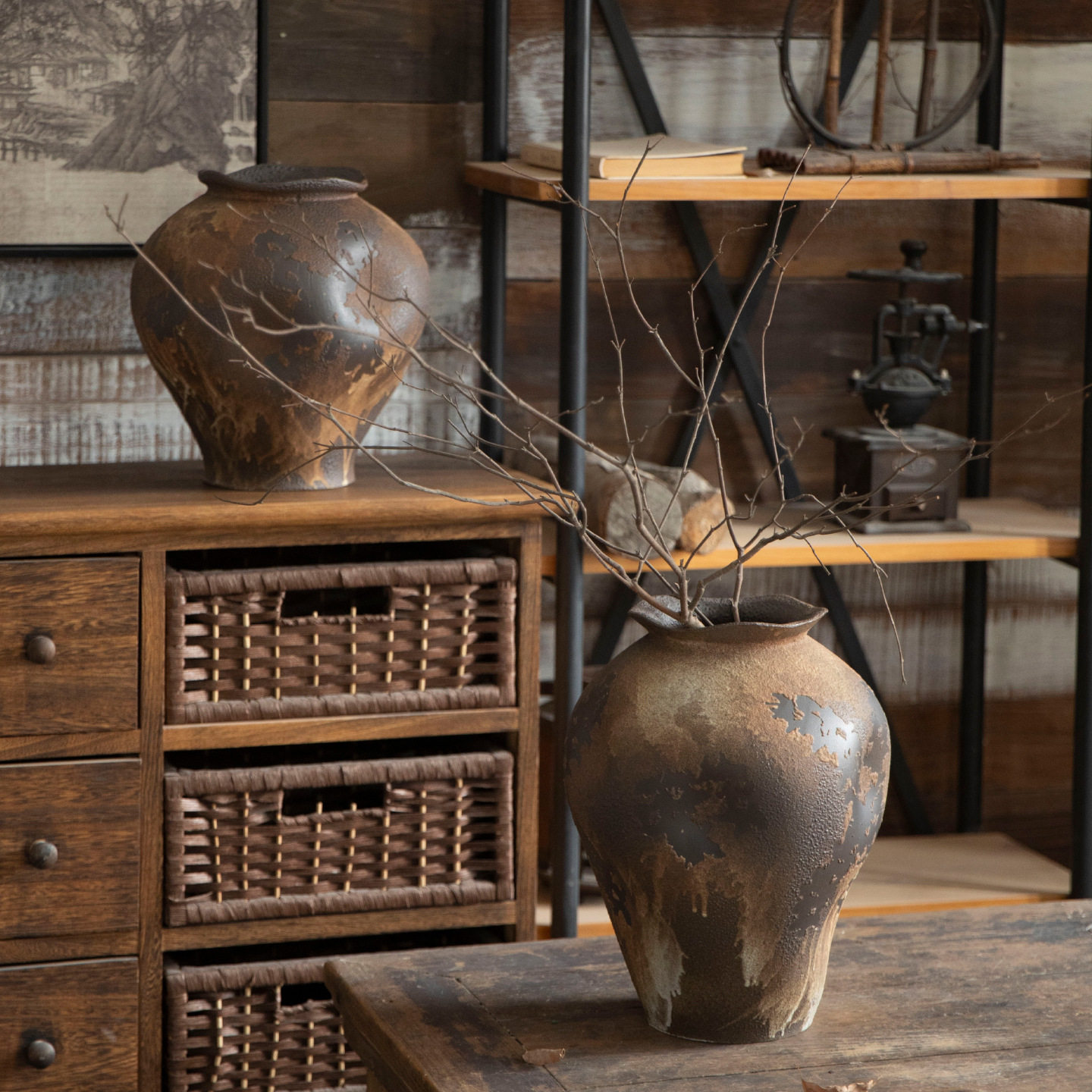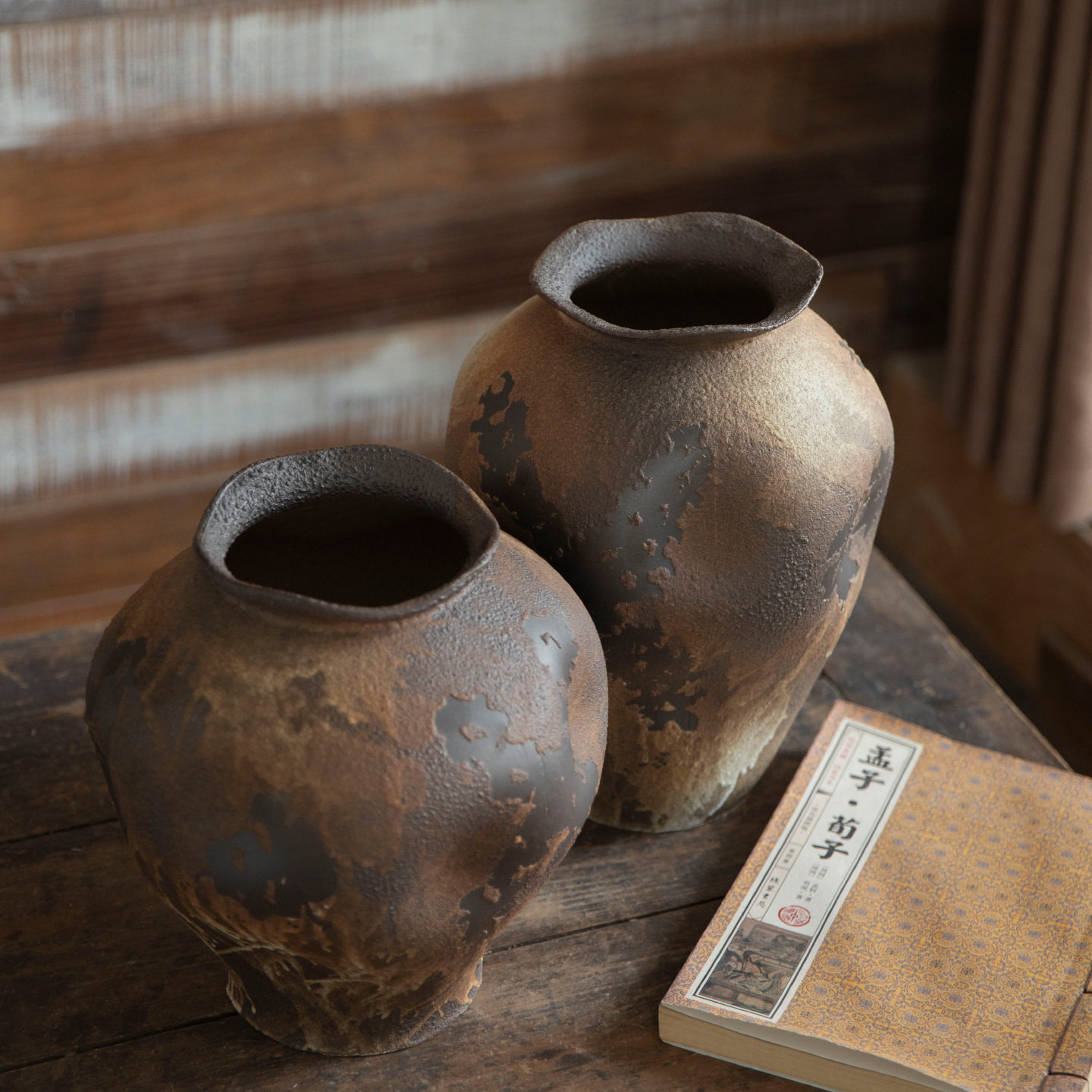 景德镇侘寂风陶瓷花瓶复古怀旧插花陶罐客厅书房装饰品摆件玄关