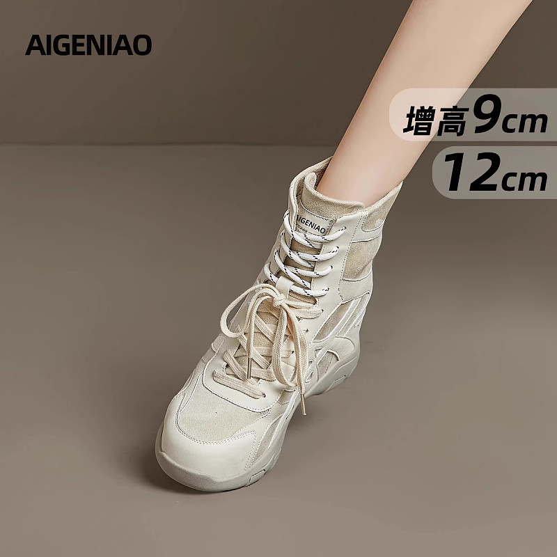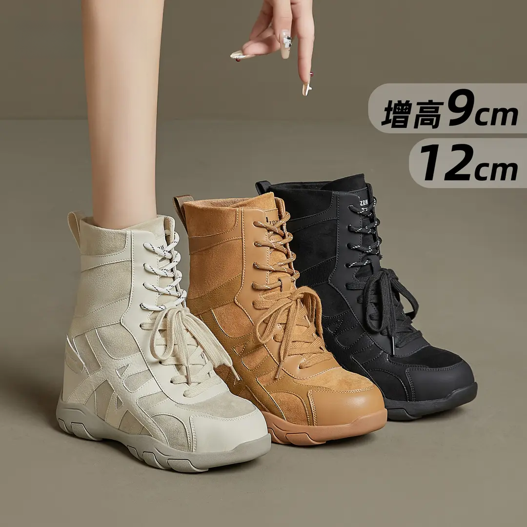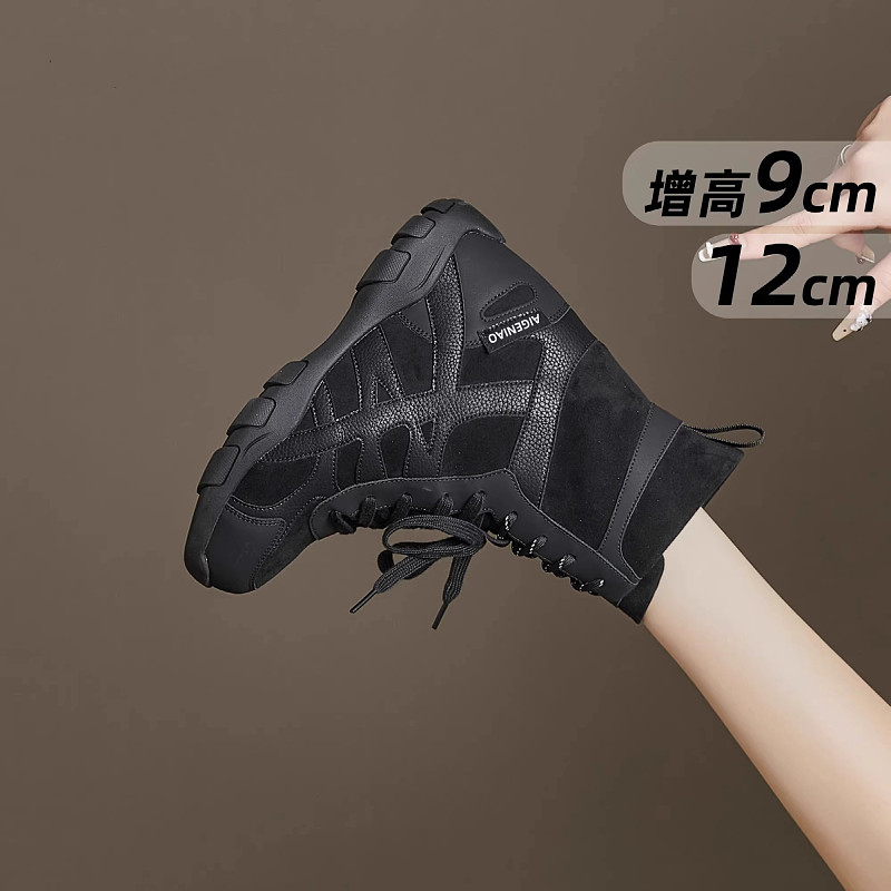 内增高12马丁靴女2025秋冬新款小个子厚底大黄靴高跟坡跟西部隐形