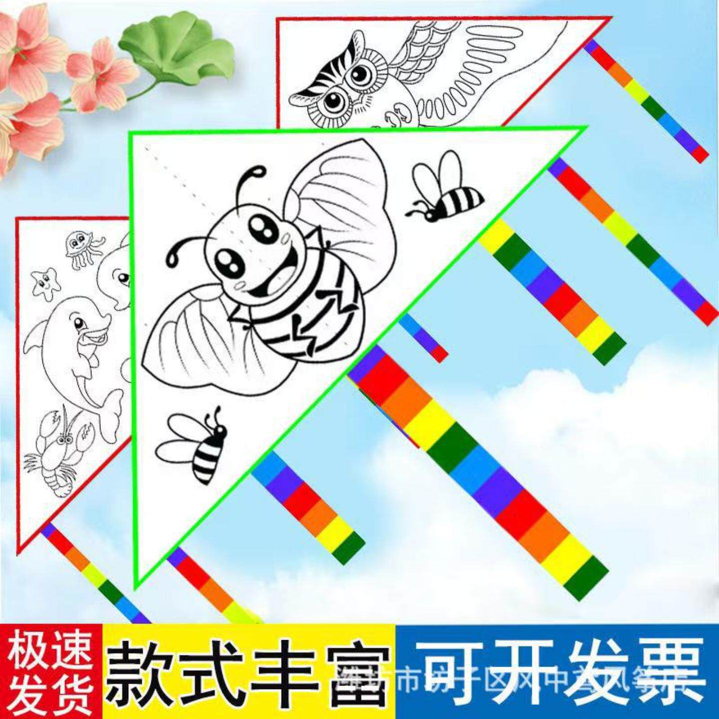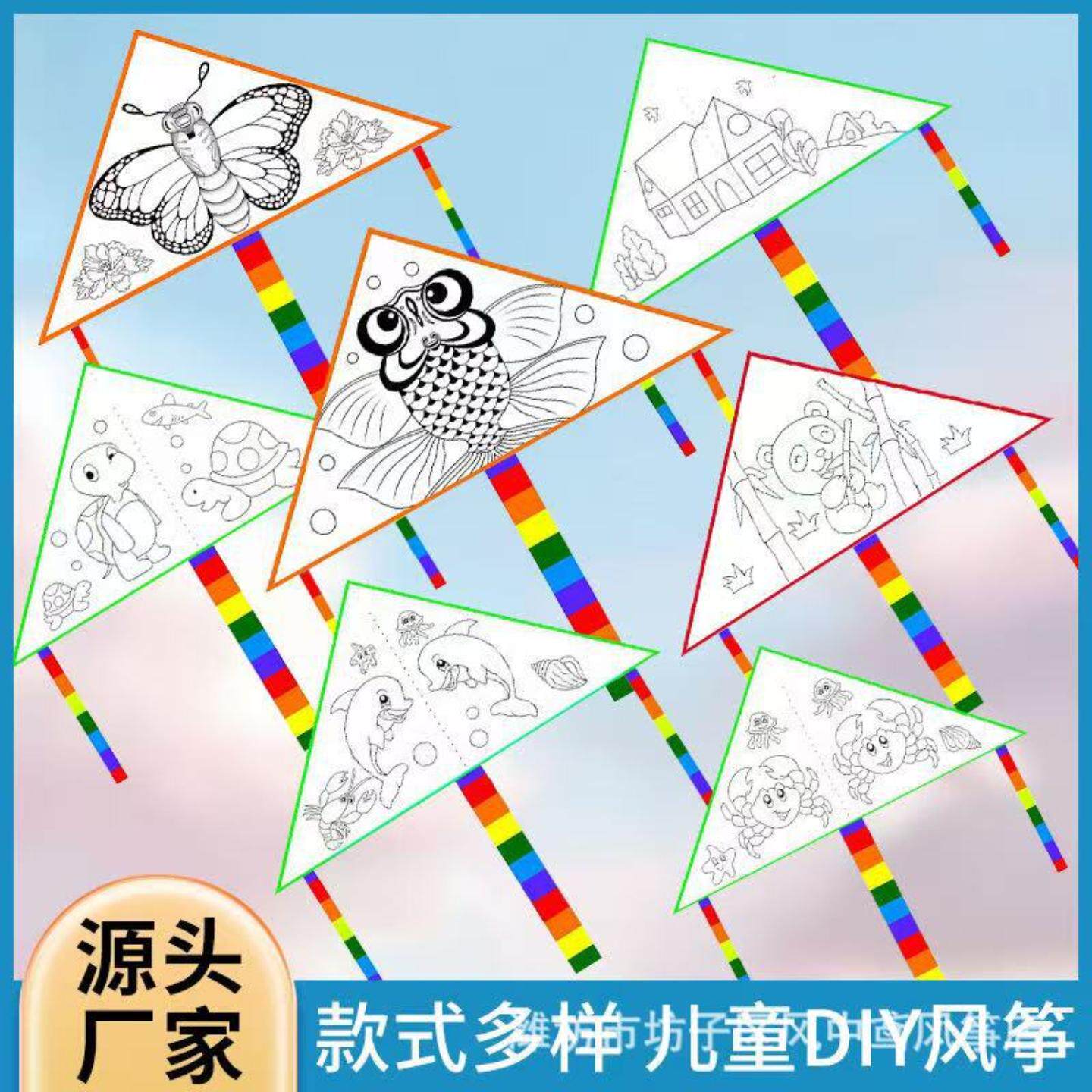 儿童线条diy风筝手工绘画涂色风筝新款空白涂鸦风筝送材料包