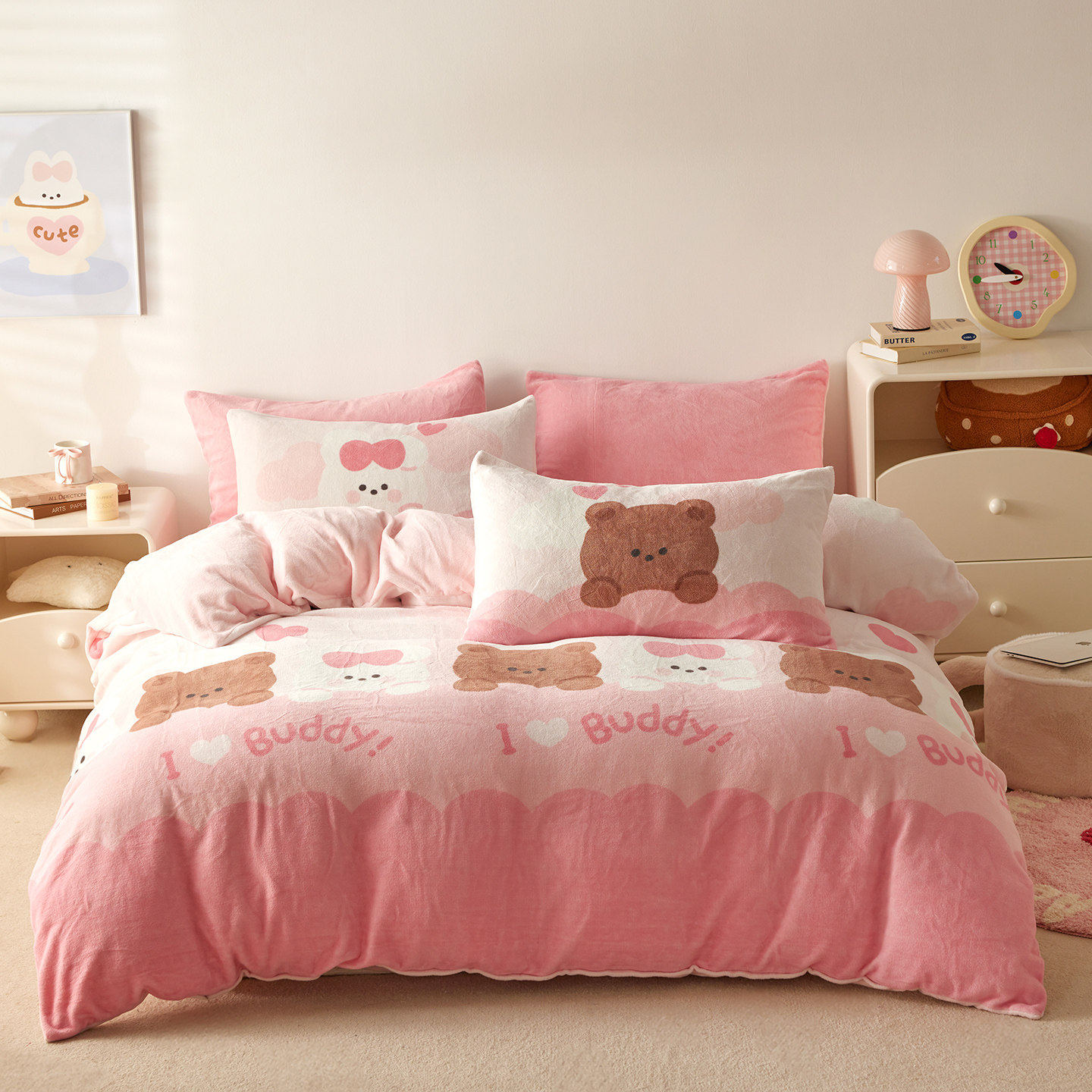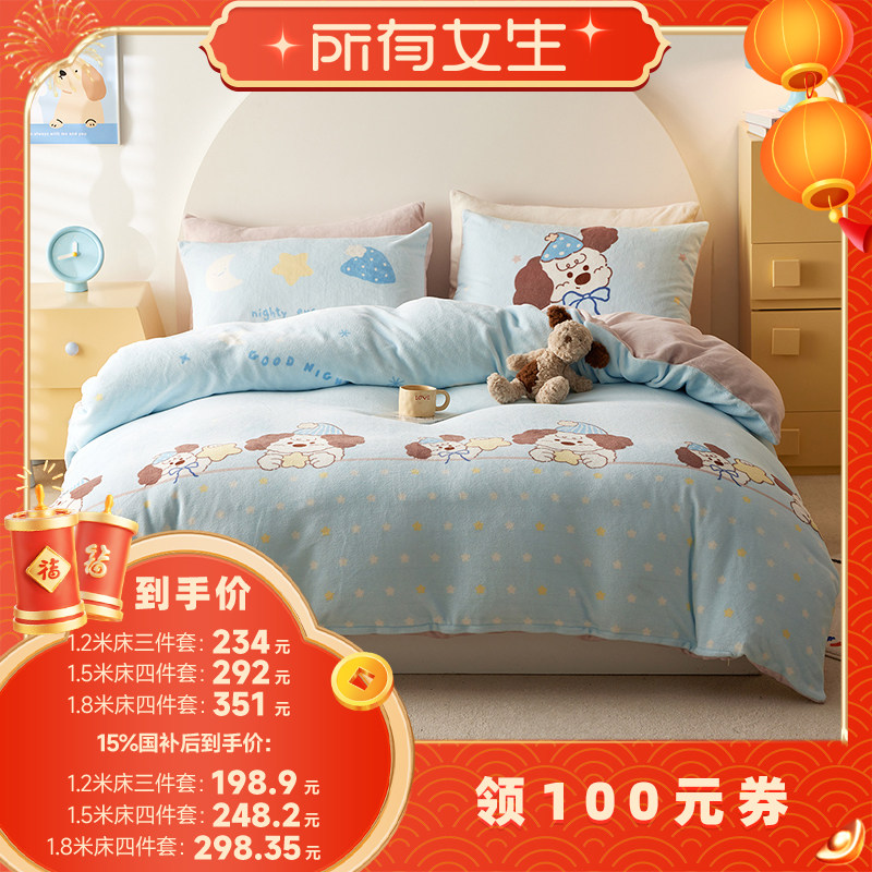 秋冬季加厚四件套牛奶绒被套床单双面加绒被罩床笠学生宿舍三件套