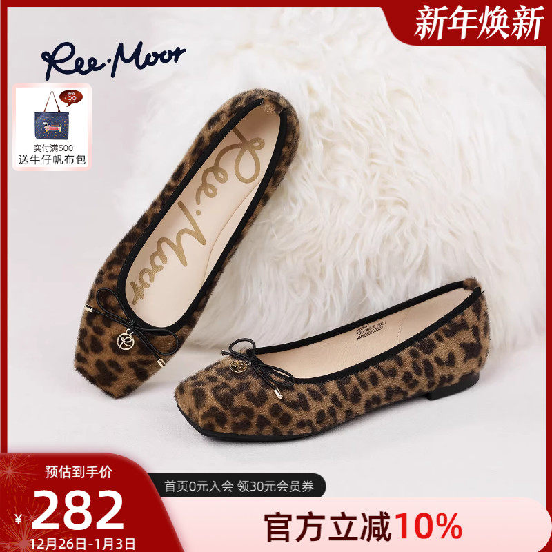 REEMOOR睿慕2025秋季新款豹纹玛丽珍鞋平底浅口一字带单鞋女鞋