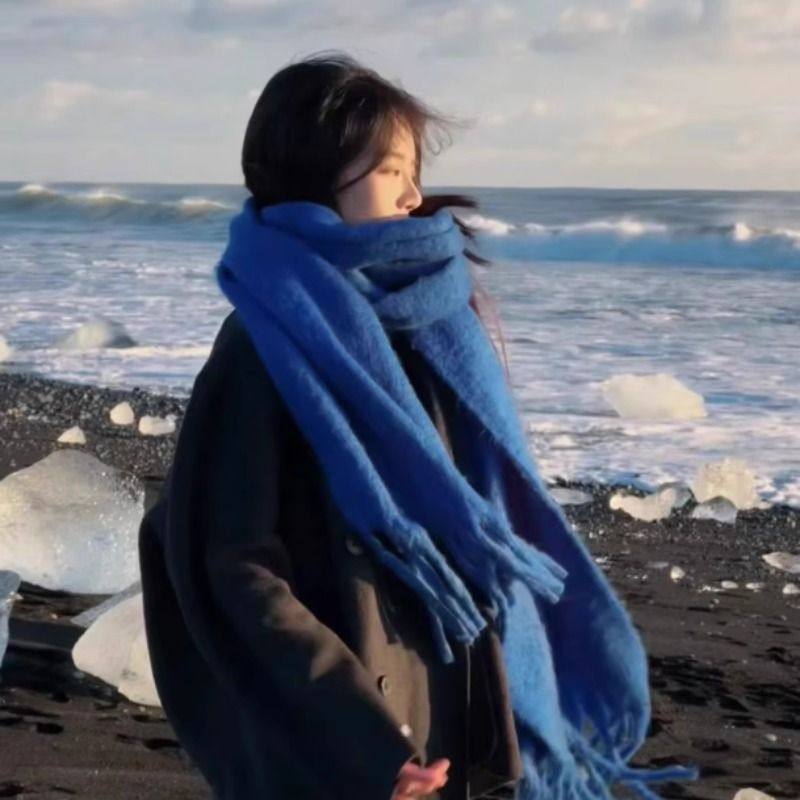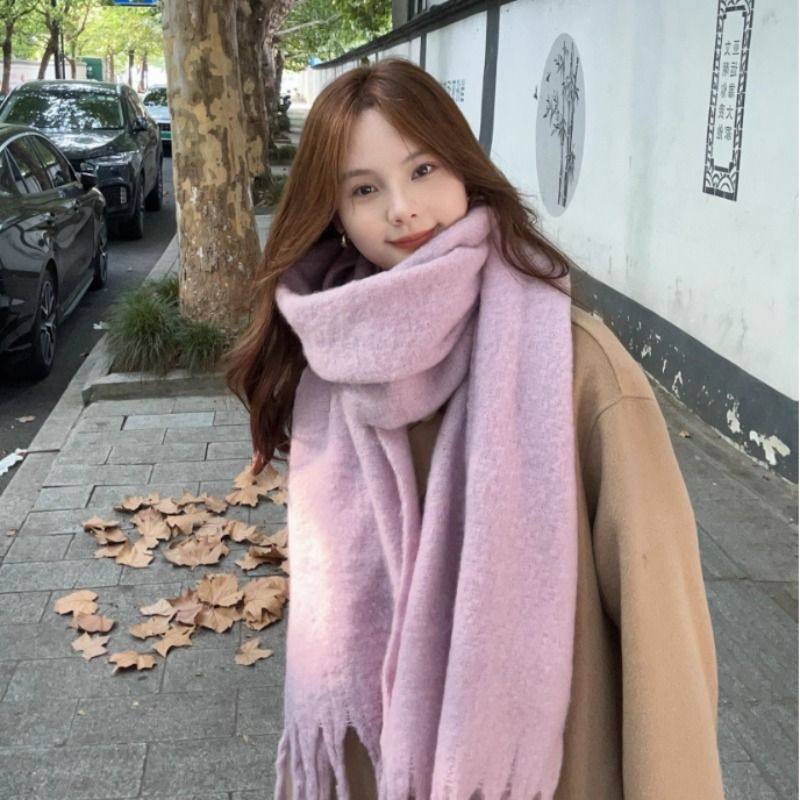 新款雾霾蓝围巾女冬季拉毛加厚学生保暖围脖灰色红色紫色蓝色粉色