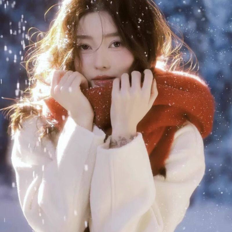 雪花双面针织围巾女秋冬季韩系氛围感加厚保暖高级感围脖复古披肩