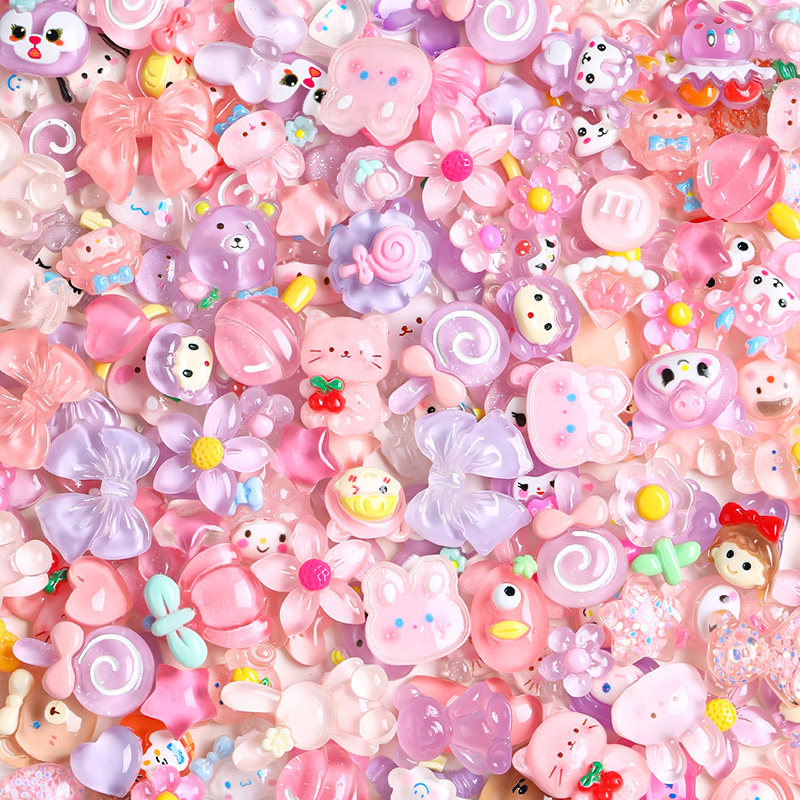 粉色系女孩咕卡配件3d立体贴片奶油胶diy材料树脂配件装饰咕卡手机壳饰品儿童女孩可爱卡通咕卡材料包