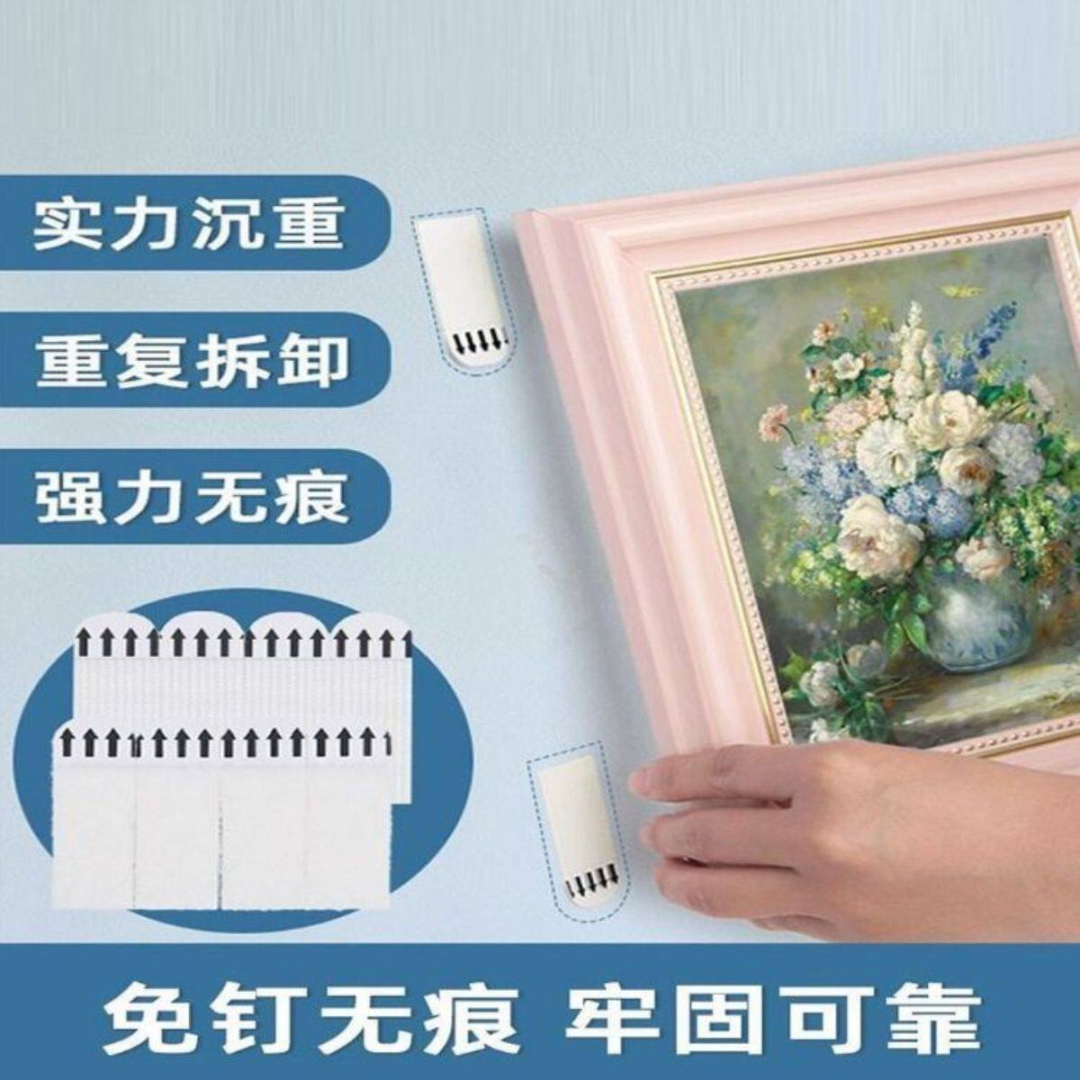免打孔挂画神器婚纱照相框挂墙挂钩无痕胶魔术贴隐形粘贴门后挂钩