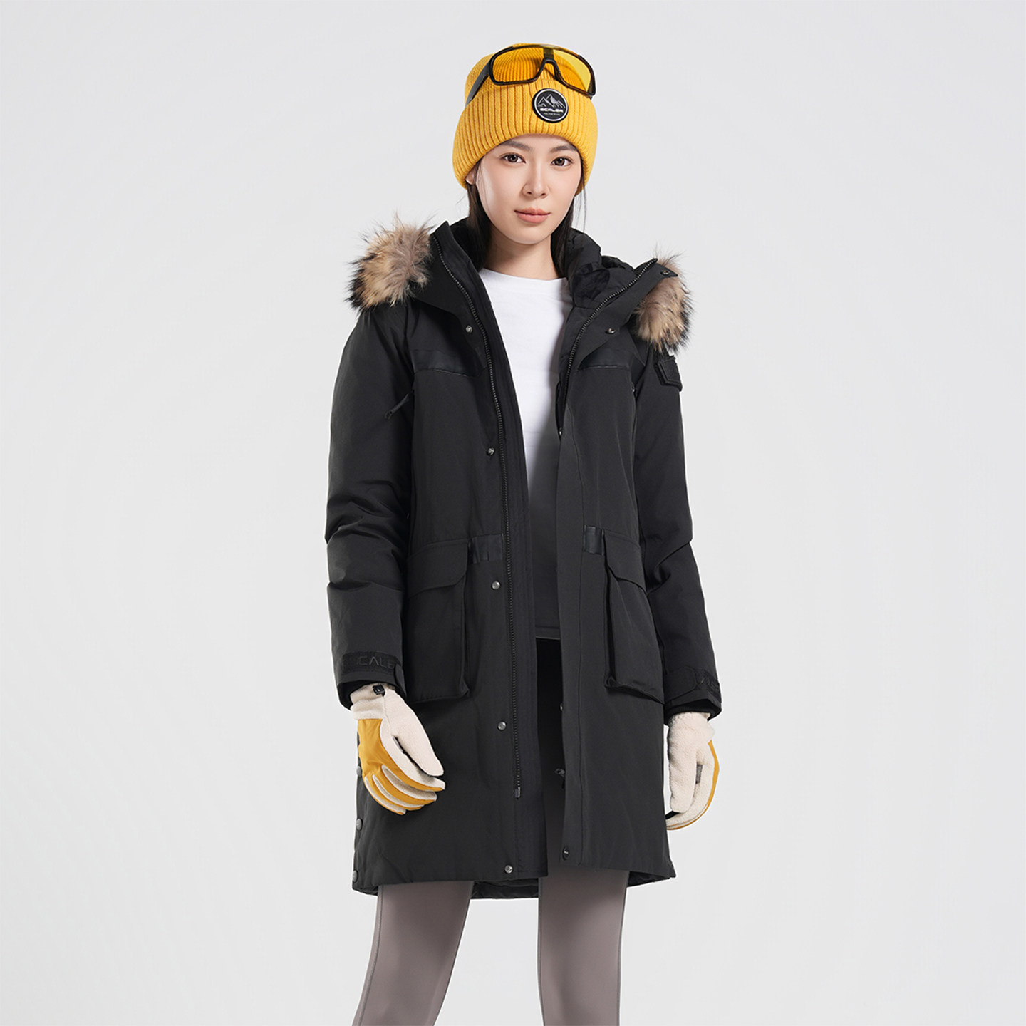 SCALER思凯乐户外鹅绒羽绒服男女中长款冬抗寒连帽毛领机能风外套