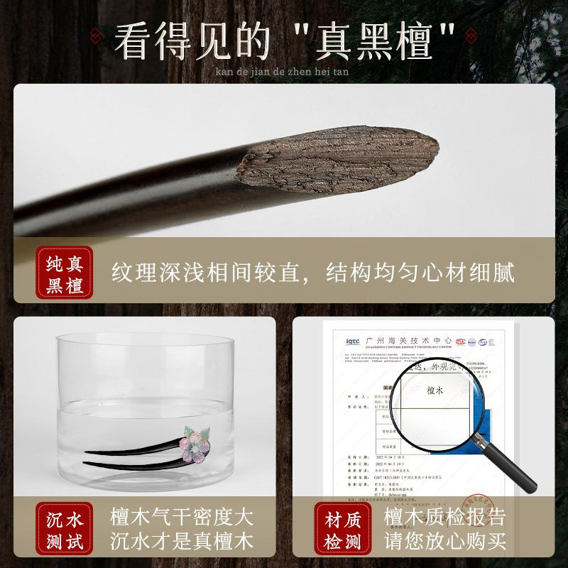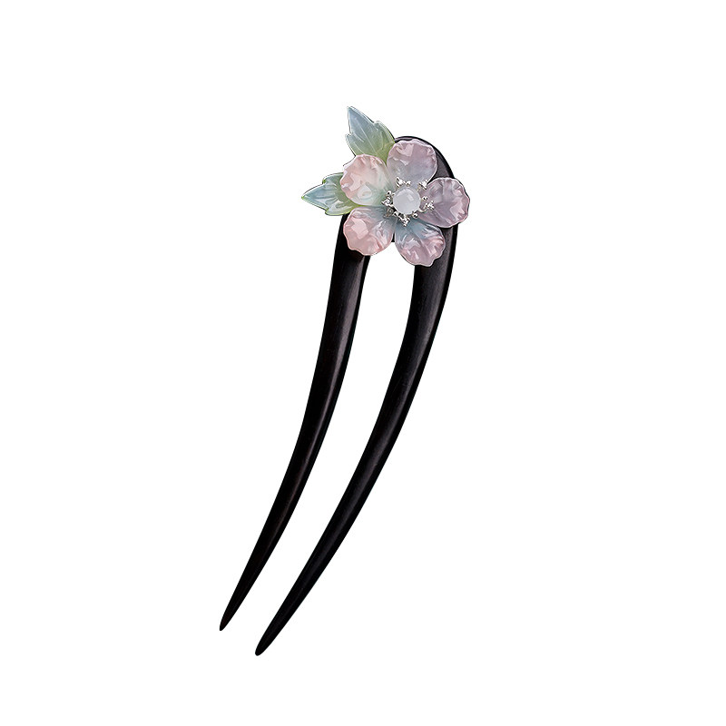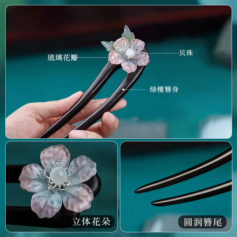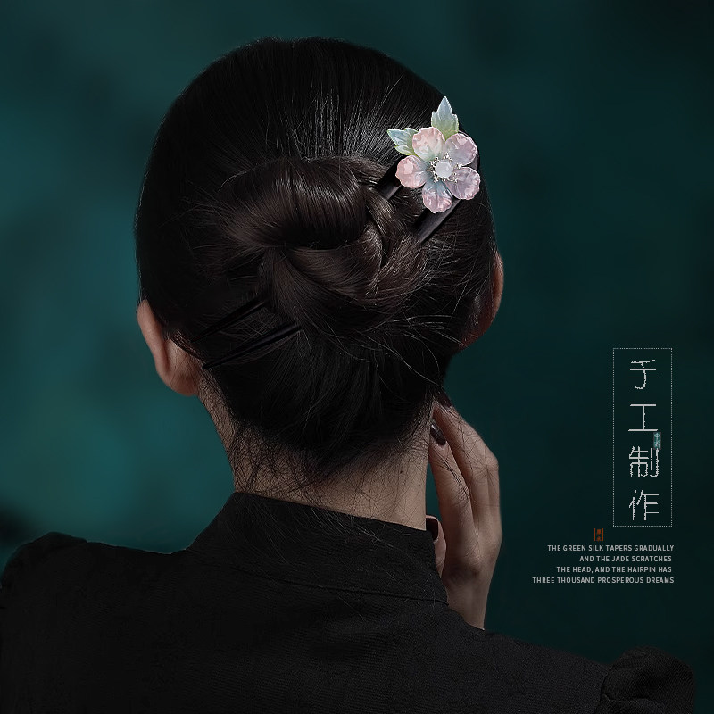 檀木流苏u型发簪中式簪子古风高级感步摇木簪日常通勤花朵盘发钗