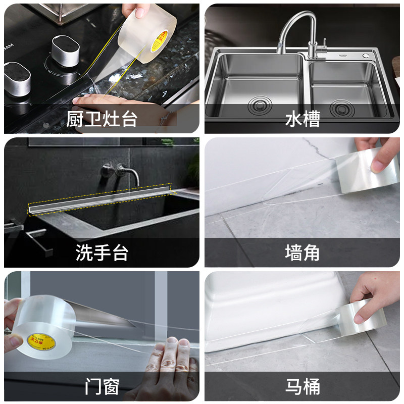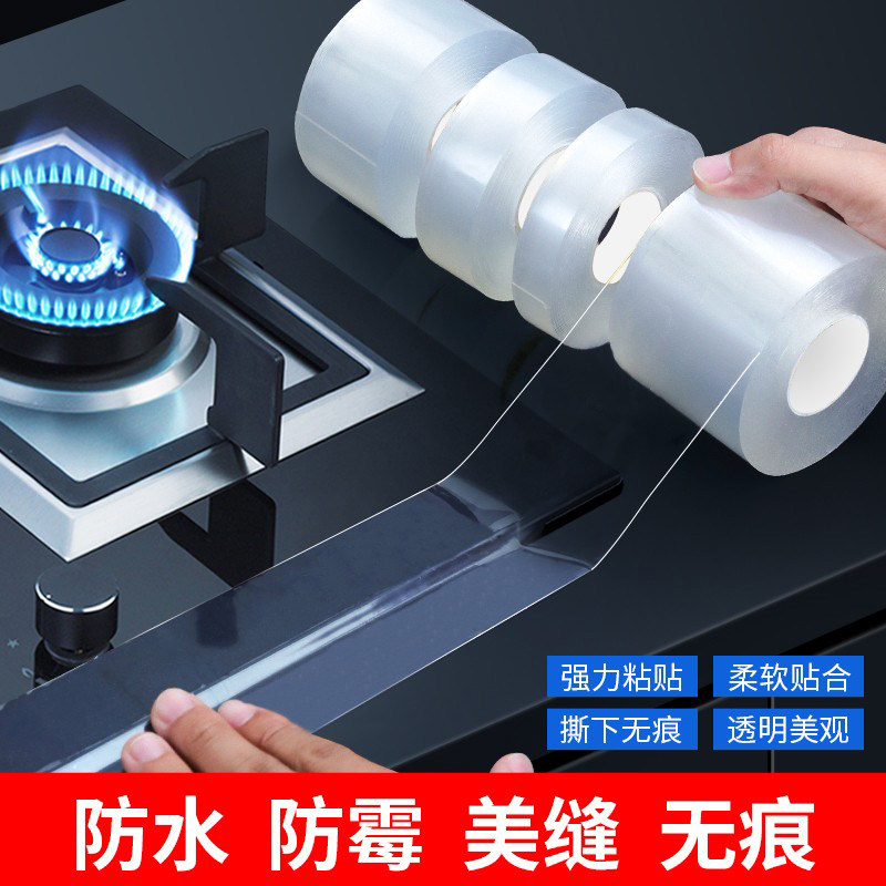 厨房防油贴纸燃气灶封边条灶台水槽边缘缝隙防水防霉防油污贴纸耐高温自粘美缝贴条水池边防水贴铝箔胶带