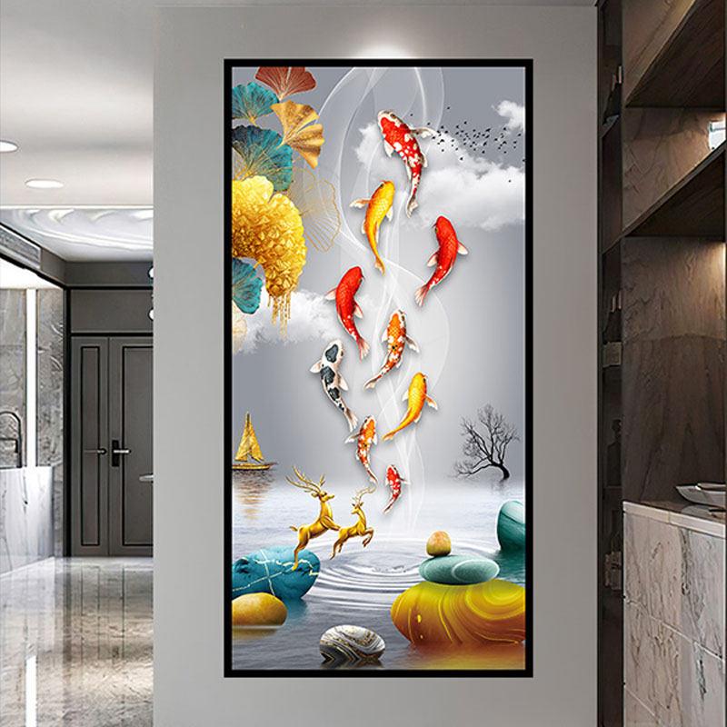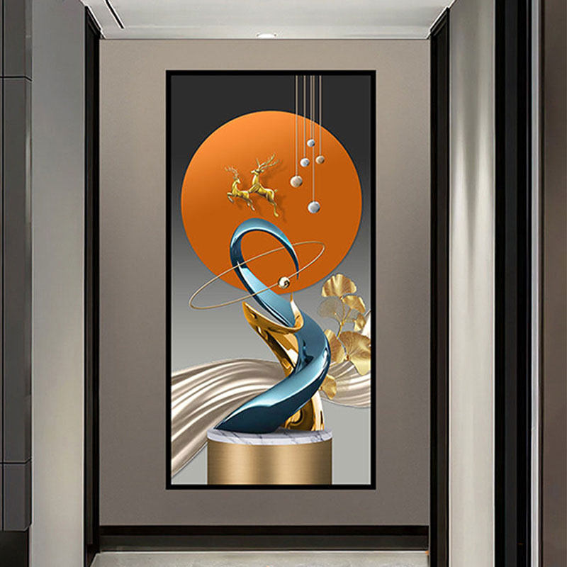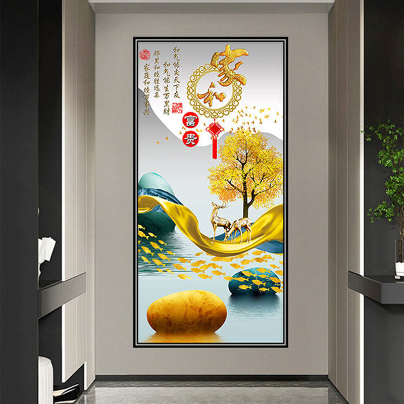 玄关装饰画贴纸自粘画新中式入户走廊墙贴客厅正对门防水壁纸贴画