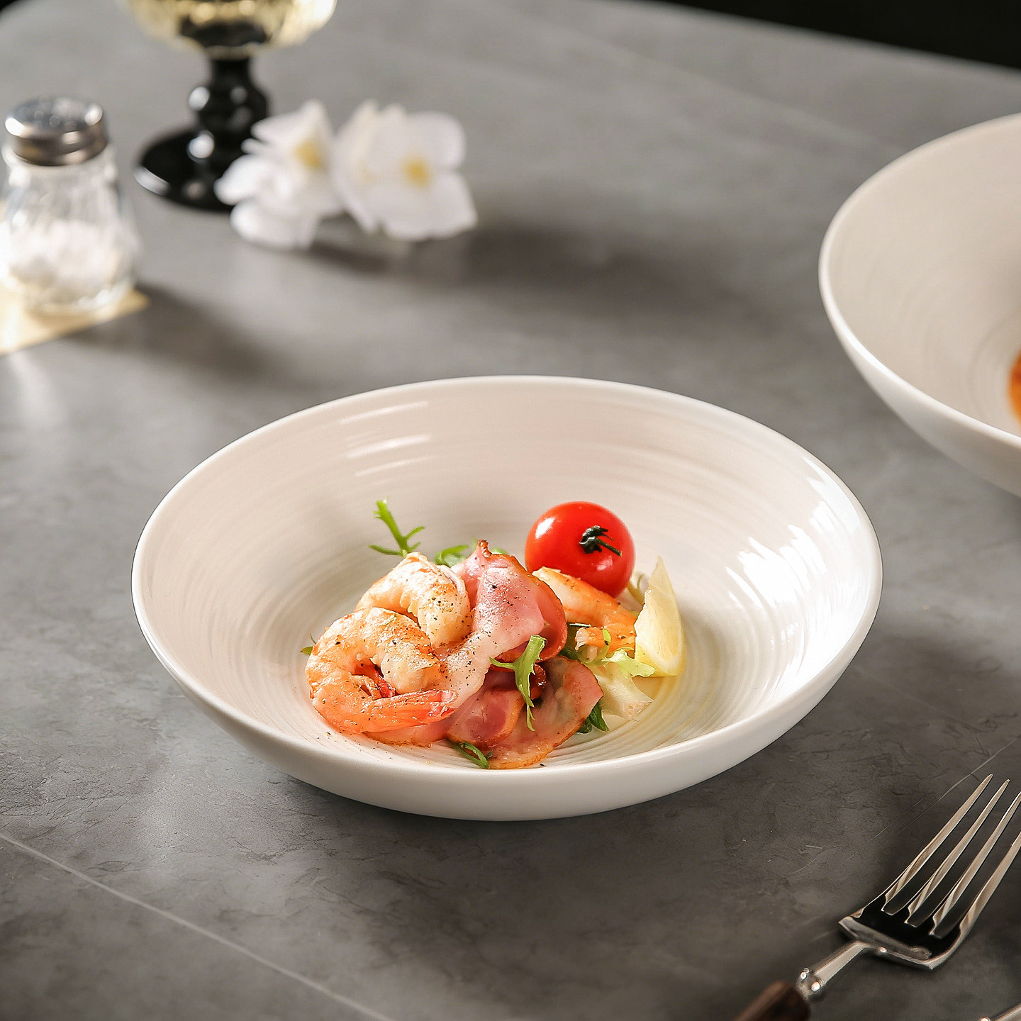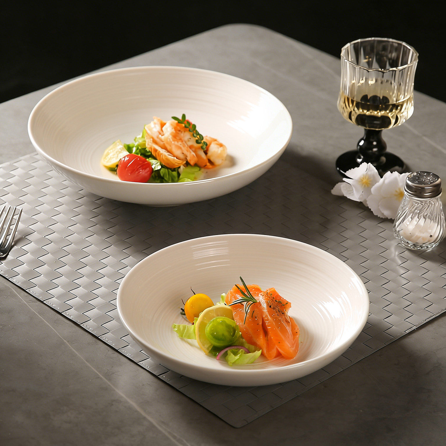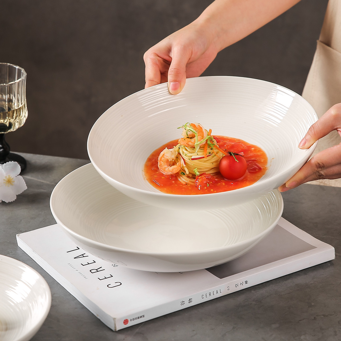 创意ins风高级感荷叶边陶瓷盘意面盘深盘西餐盘水果沙拉碗酸奶碗