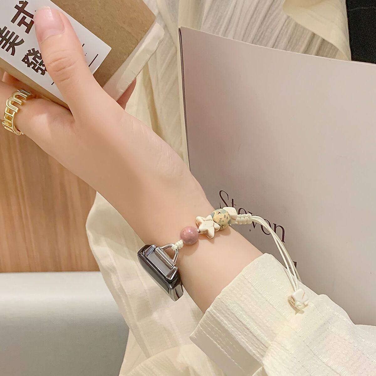 适用华为手环10/9/8表带串珠腕带星星串珠通用NFC荣耀手环9/10替换手表带ins风创意个性男女款高级感夏天