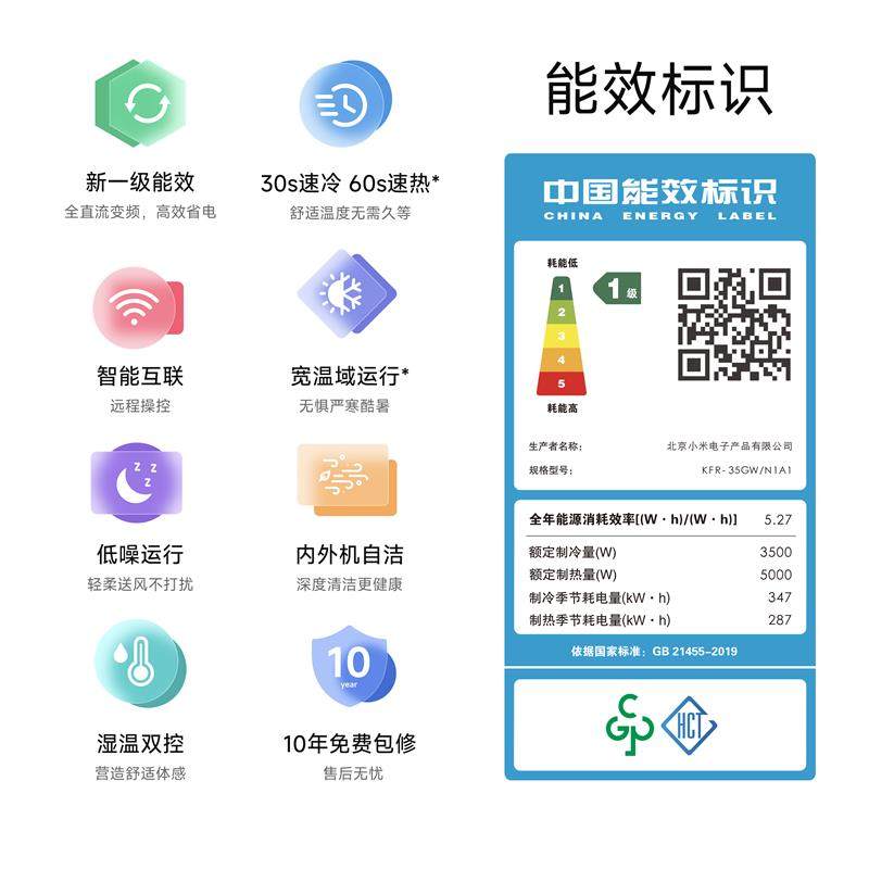 国补20% 小米空调巨省电1匹1.5匹新一级能效智能变频冷暖家用80