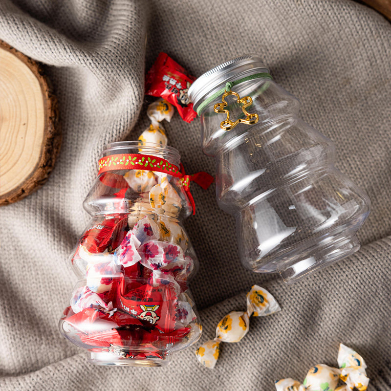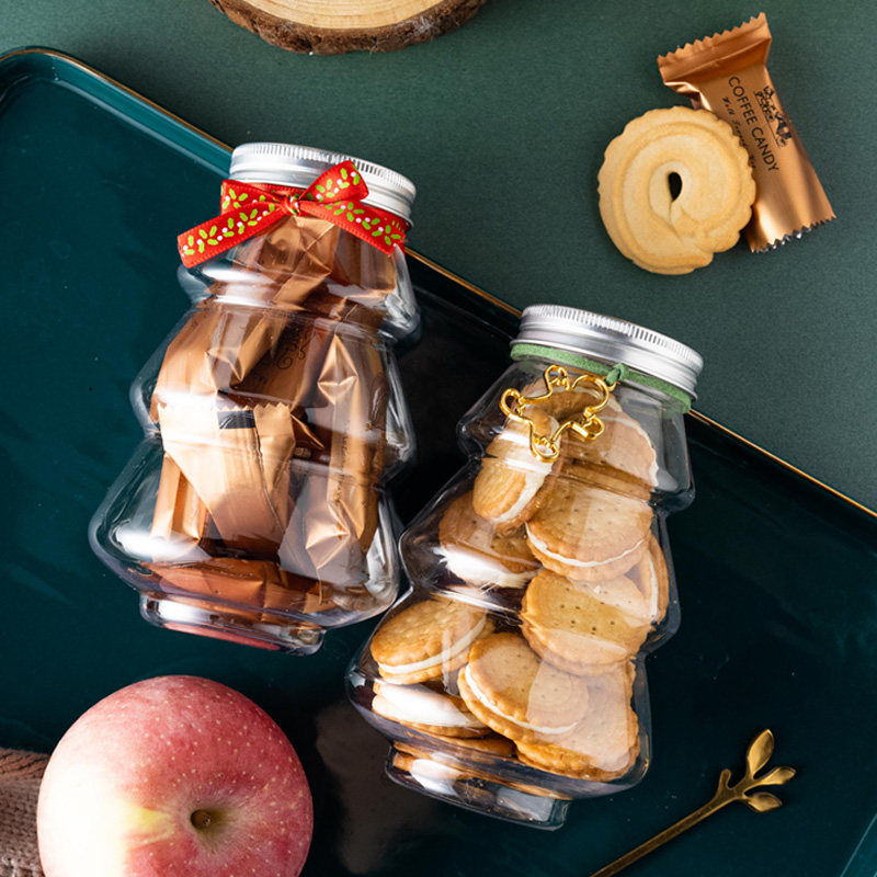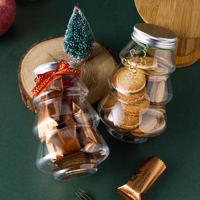 圣诞包装 创意饼干罐圣诞树奶茶瓶食品级储物密封罐塑料透明盒子