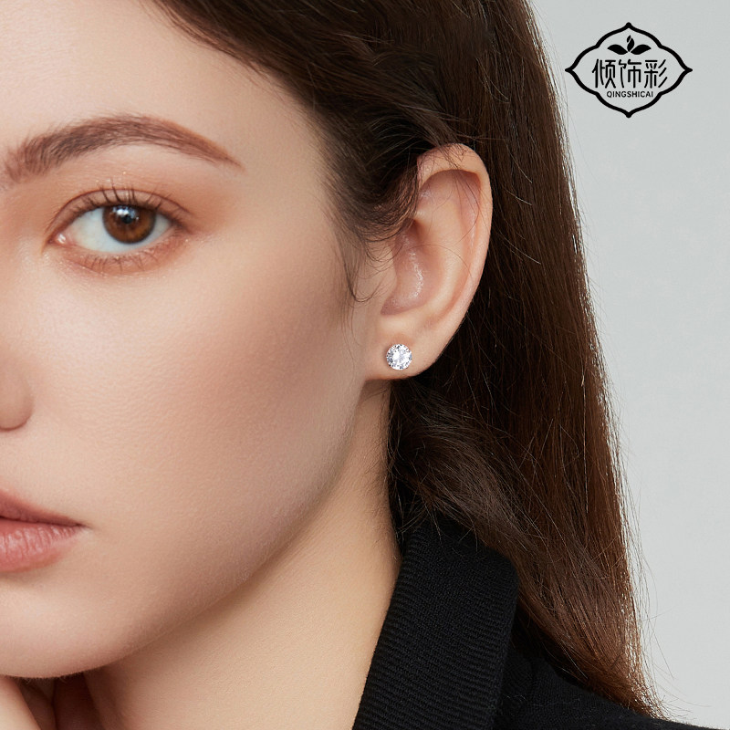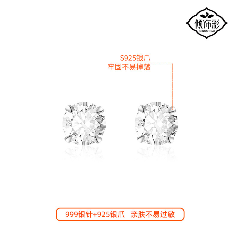 999纯银养耳洞锆石耳钉女超闪高级感小耳环耳棒耳骨钉耳饰精致