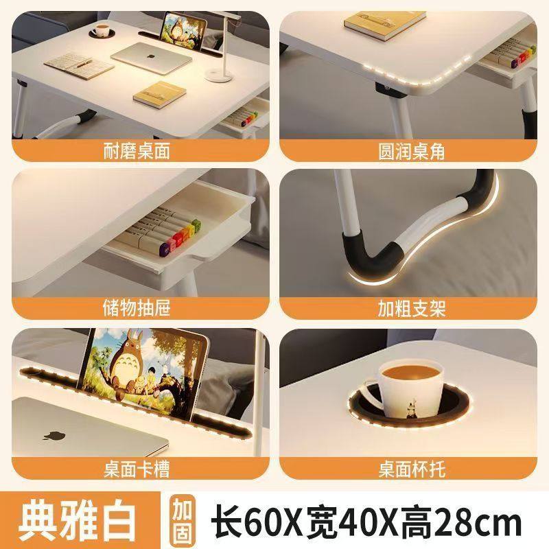 可升降折叠床上小桌子简约宿舍学生写字床上书桌学习调节高度支架家用卧室坐地飘窗懒人笔记本电脑办公小桌板