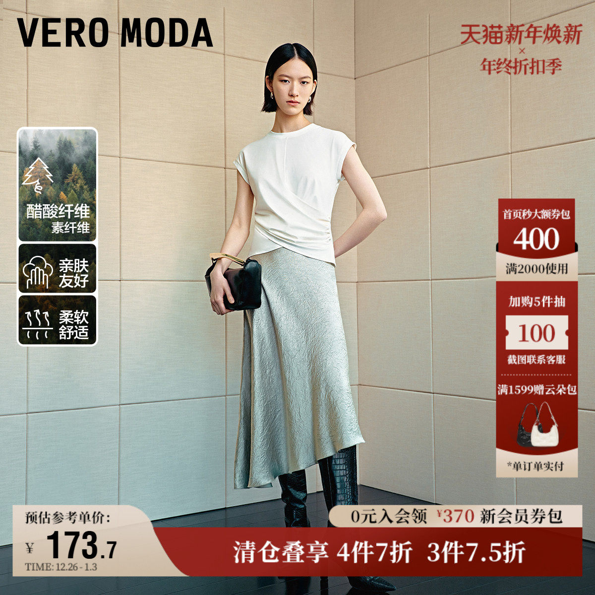 Vero Moda奥莱半身裙夏季新商场同款缎面气质褶皱不规则裙摆优雅