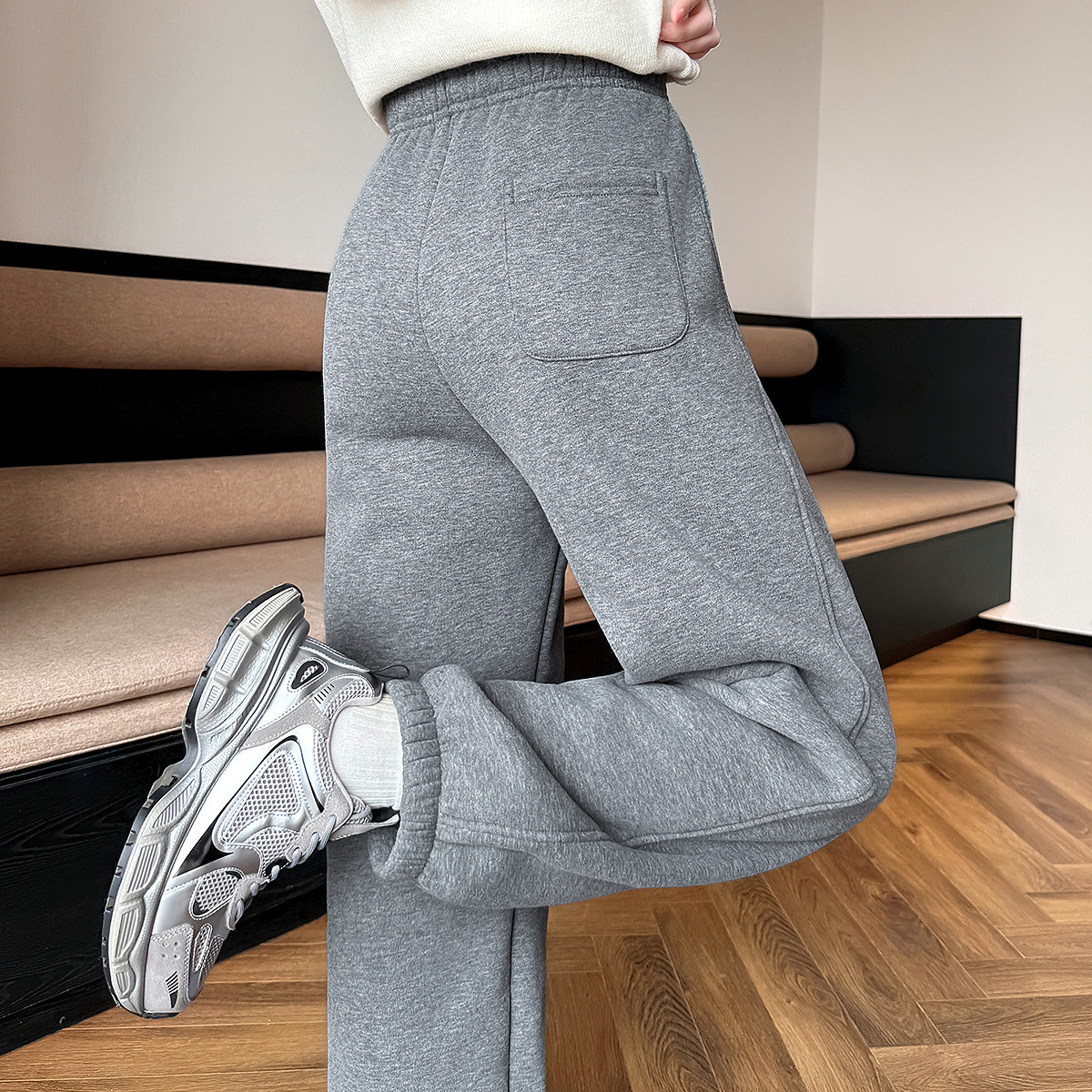 杨幂同款SIINSIIN2025新款白色加绒直筒裤女冬季厚显瘦运动小个子