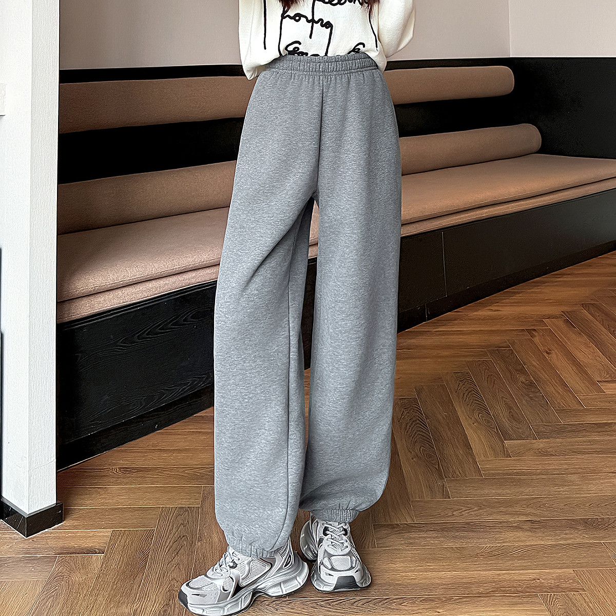 SIINSIIN加绒卫裤女2025新款阔腿运动裤休闲长裤冬季白色直筒裤子