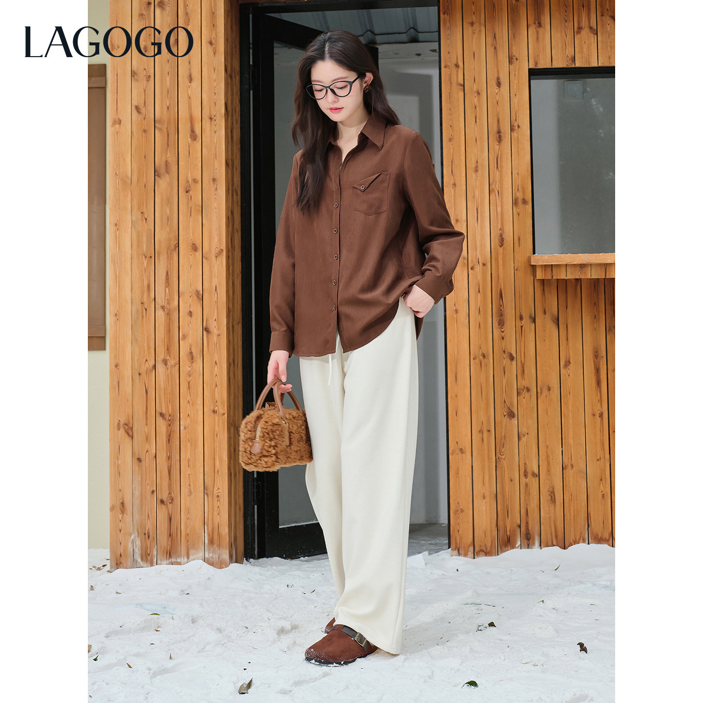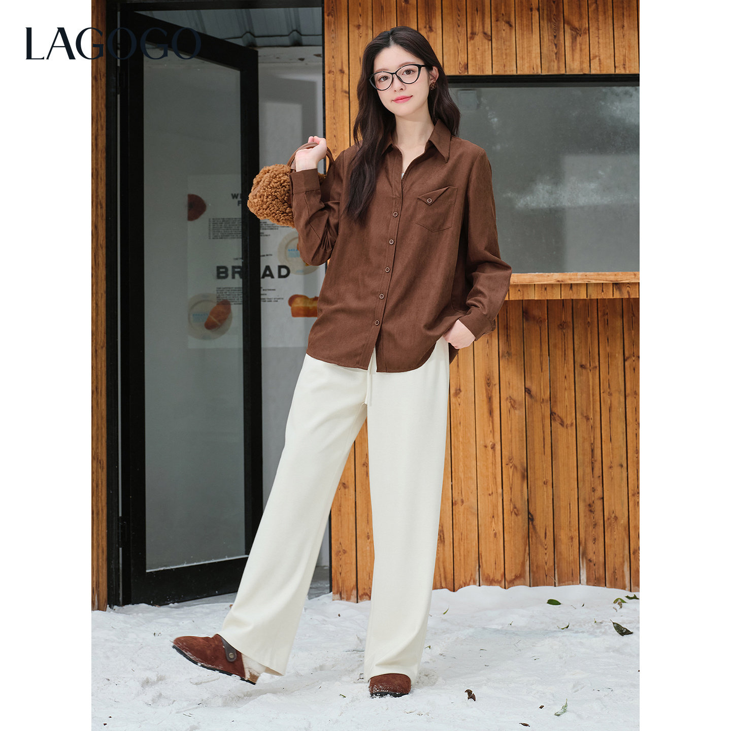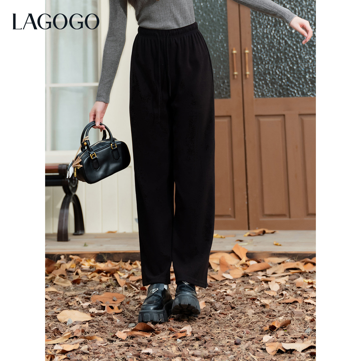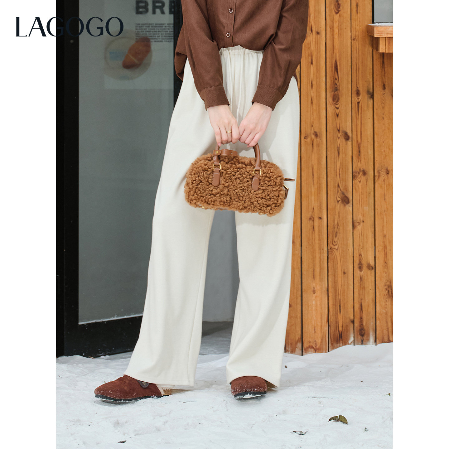 LAGOGO米白色弹力柔软糯米裤女拉谷谷2026年春新款简约宽松阔腿裤