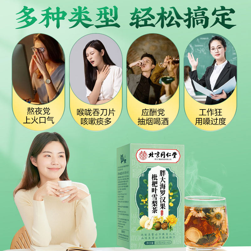 北京同仁堂胖大海罗汉果雪梨茶菊花咽炎肺化痰止咳官方旗舰店正品