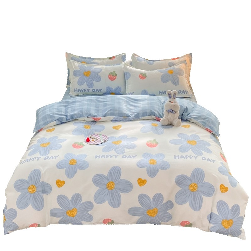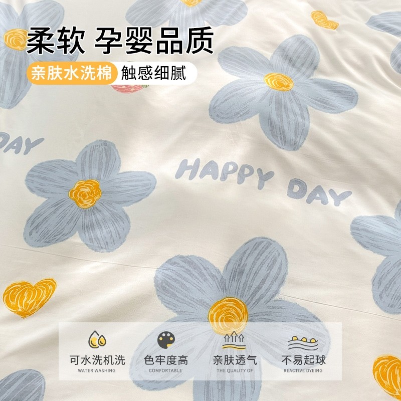 A类水洗棉双层纱四件套被罩非全棉纯棉床单人学生宿舍被套三件套