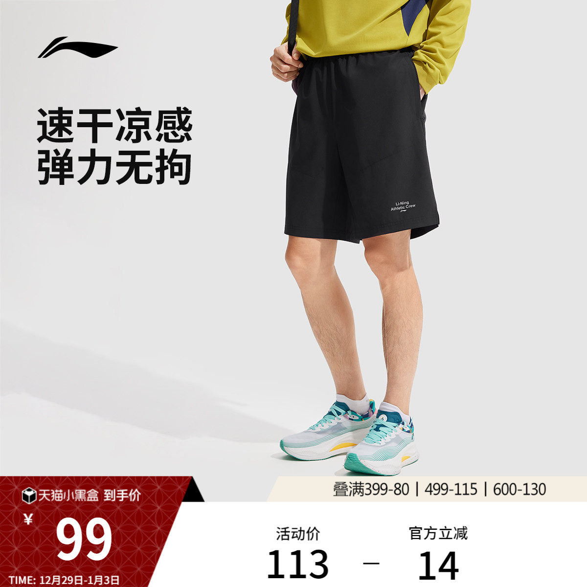 李宁运动短裤男士夏季跑步健身速干短裤专业训练短裤透气运动裤男