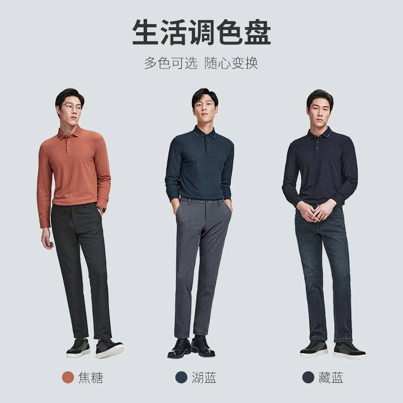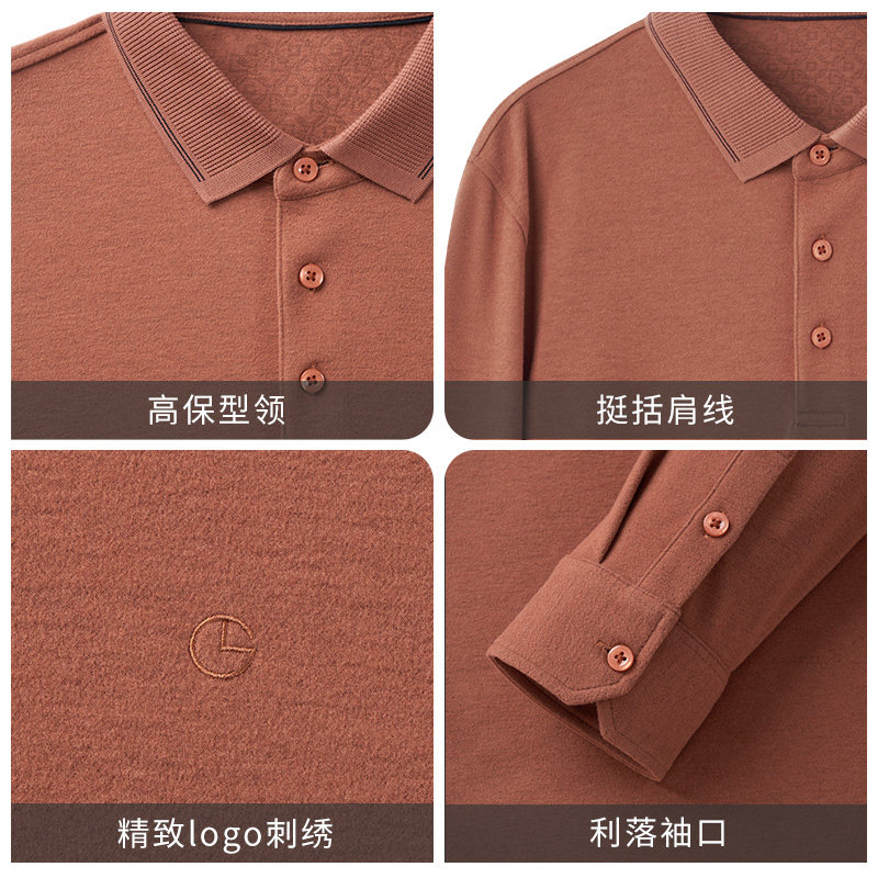 【慕斯绒】金利来秋冬新款男士磨毛柔软长袖T恤商务翻领polo衫男