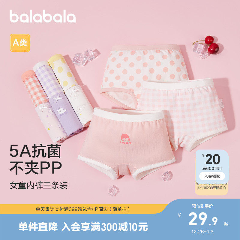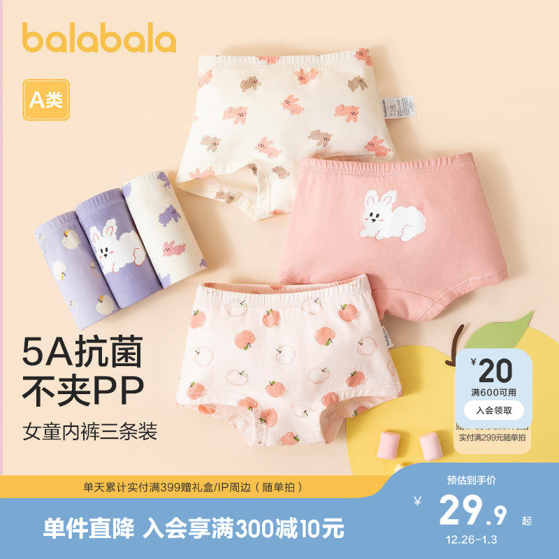 巴拉巴拉女童内裤棉平角儿童三角短裤小大童宝宝不夹PP四角三条装