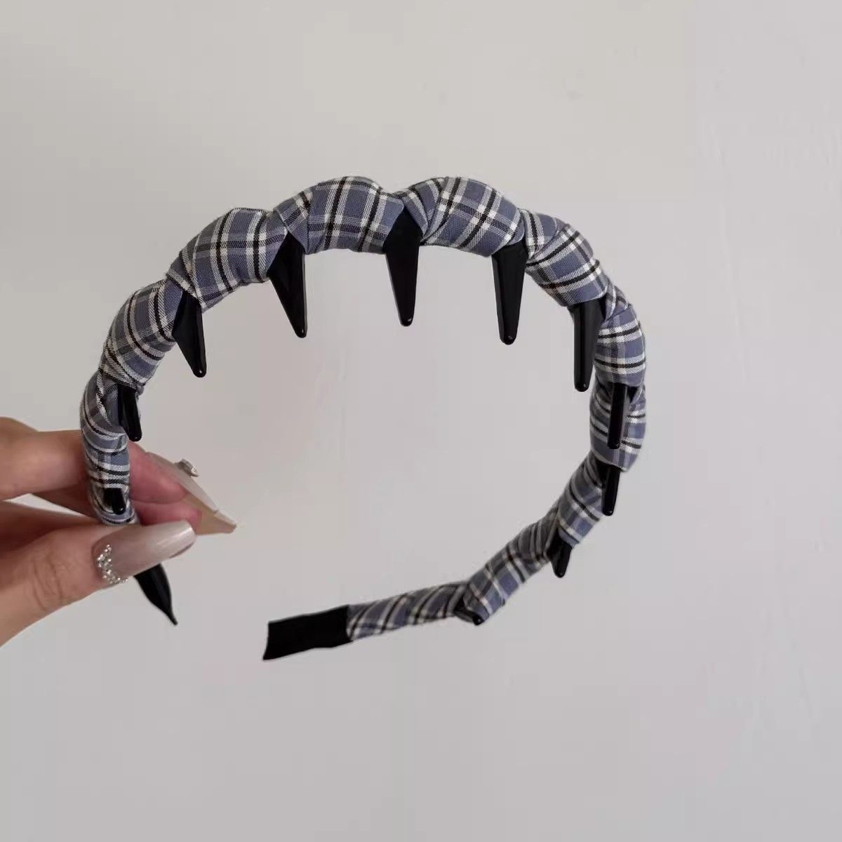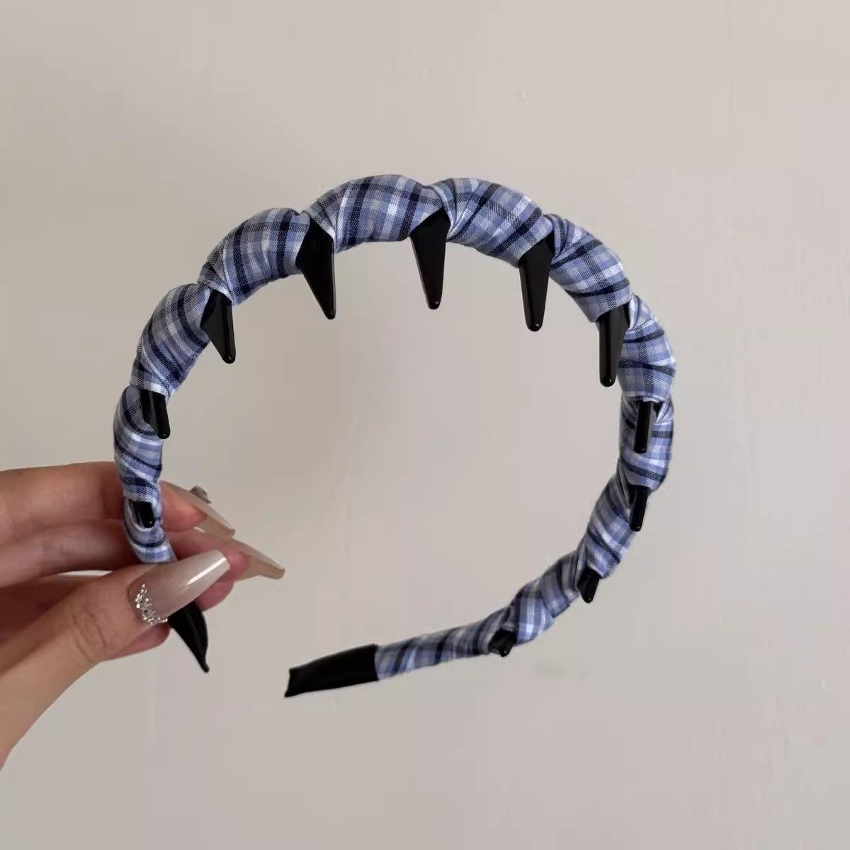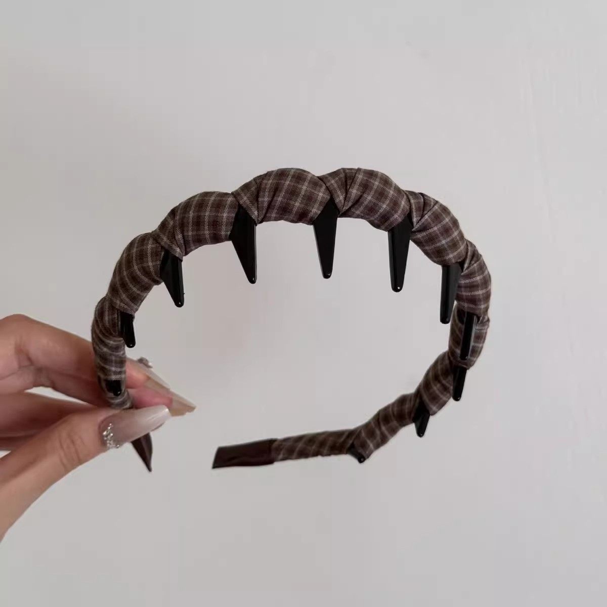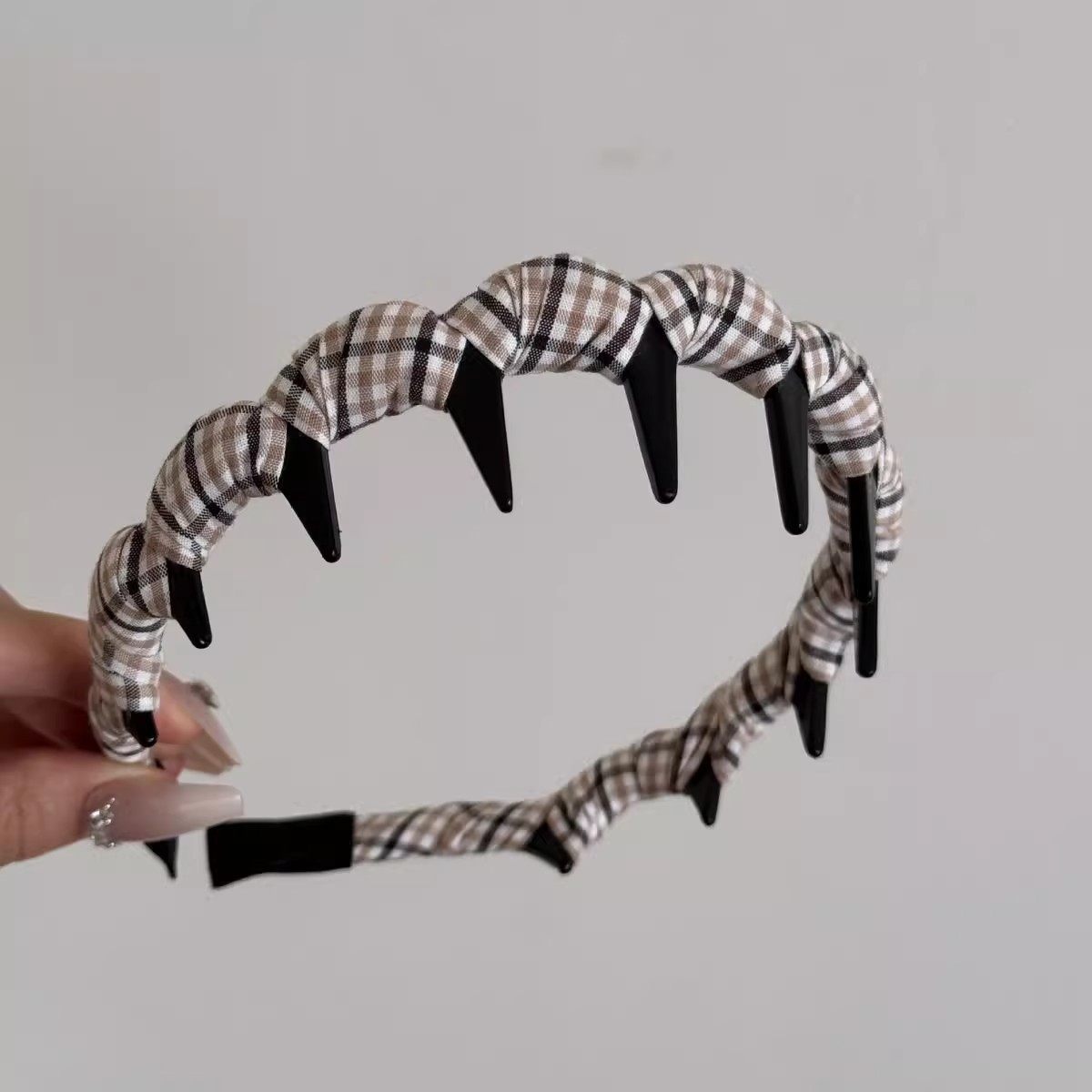 高颅发箍带齿头箍防滑韩系百搭格纹布艺带齿2025新款发卡压发发饰