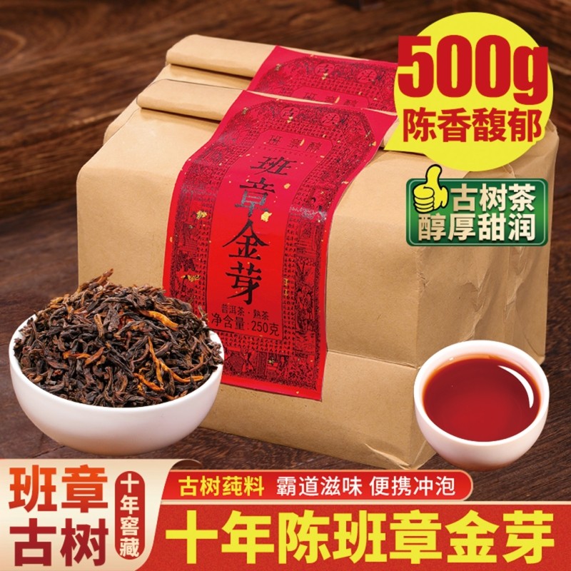 老班章普洱茶熟茶十年以上云南古树金芽熟普口粮散茶叶喝大叶糯米