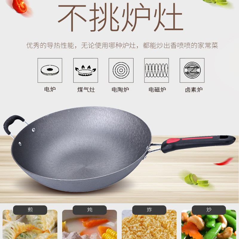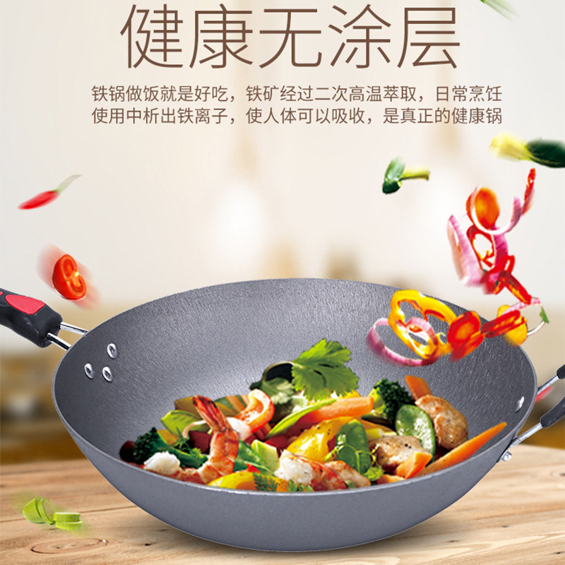 铁锅官方旗舰炒菜锅老式炒锅铁锅家用不粘锅无涂层燃气灶适用