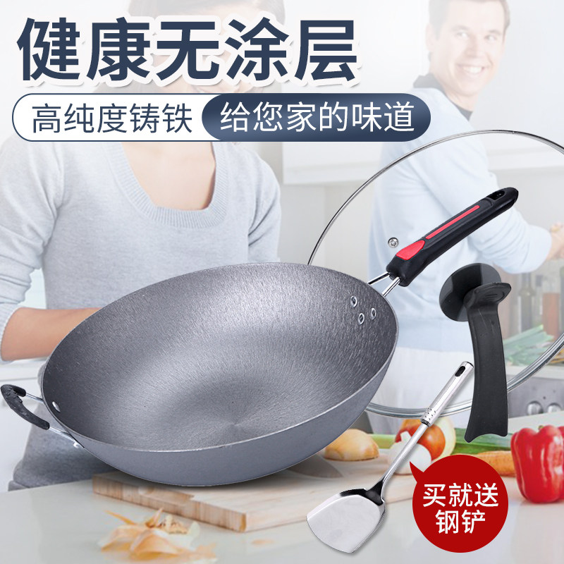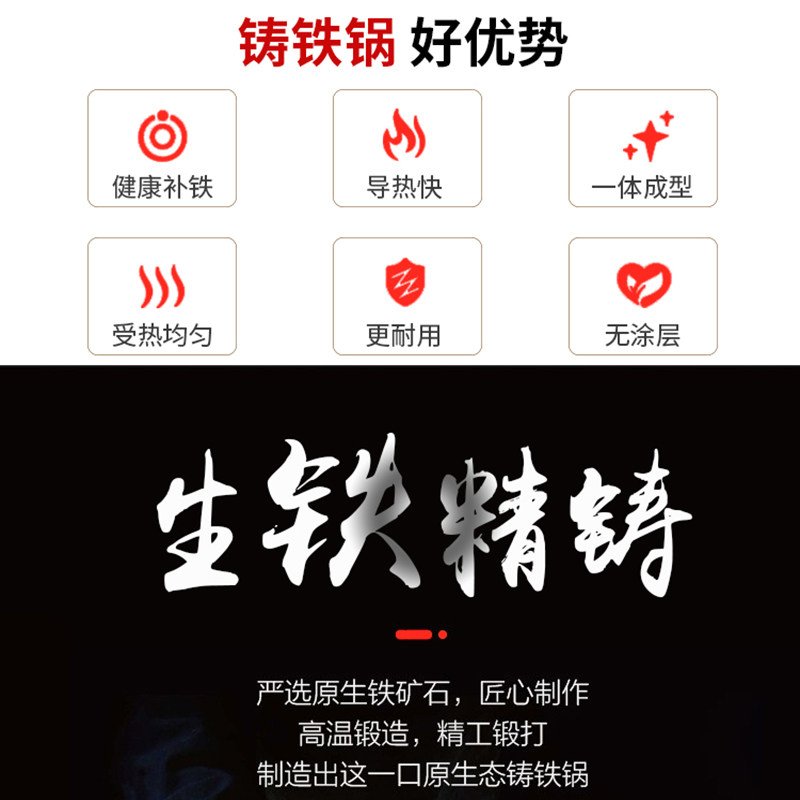 铸铁锅家用炒菜生铁锅电磁炉煤气灶专用炒锅不粘锅无涂层平底圆底
