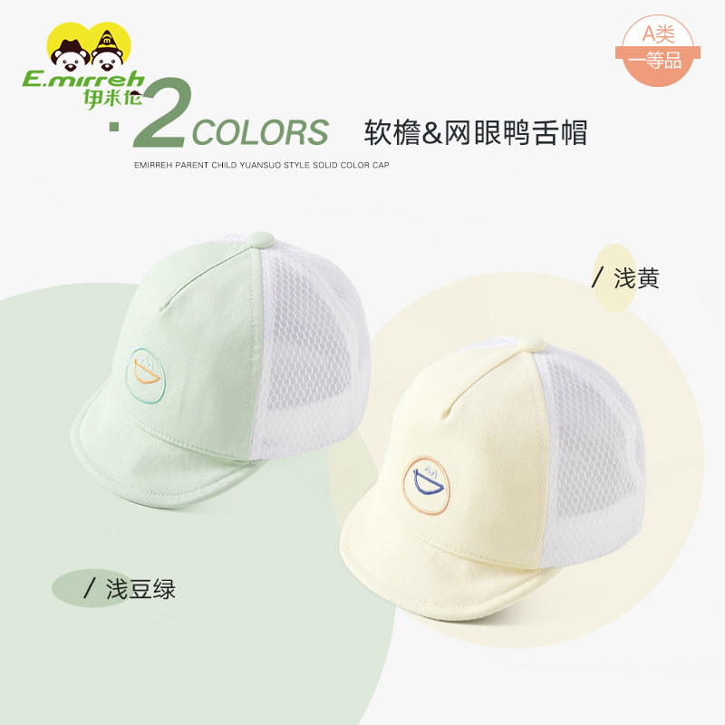 伊米伦婴儿帽子夏季薄款遮阳防晒鸭舌网眼帽软帽檐男女宝宝棒球帽