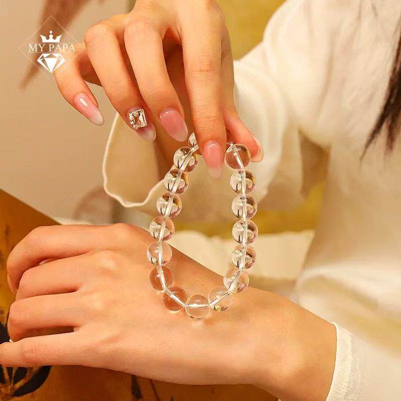 爆款仿白水晶东海圆珠手链手串男女款散珠佛珠磁场三圈晶体